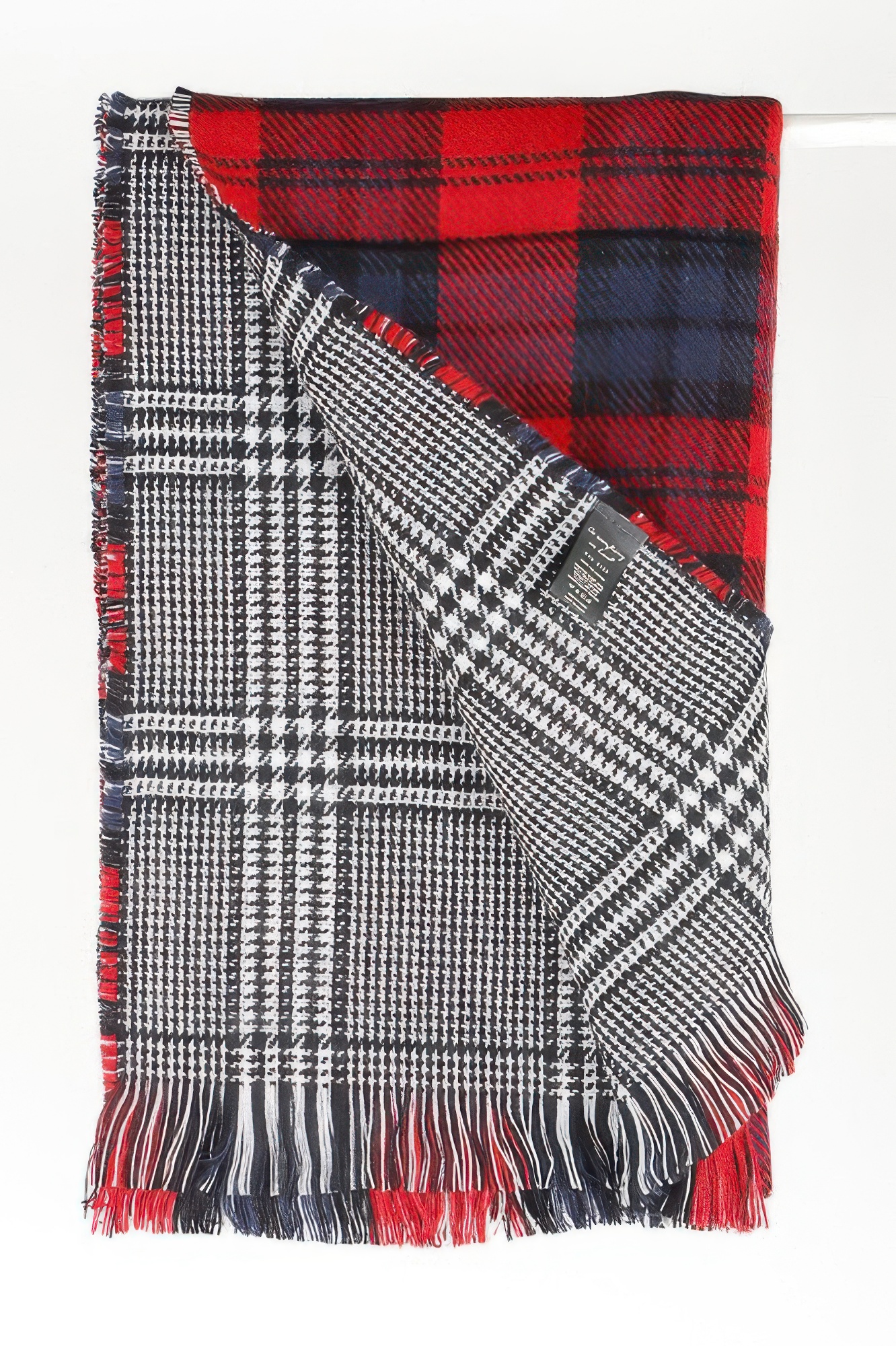 Classic plaid patterned scarf with fringe ends