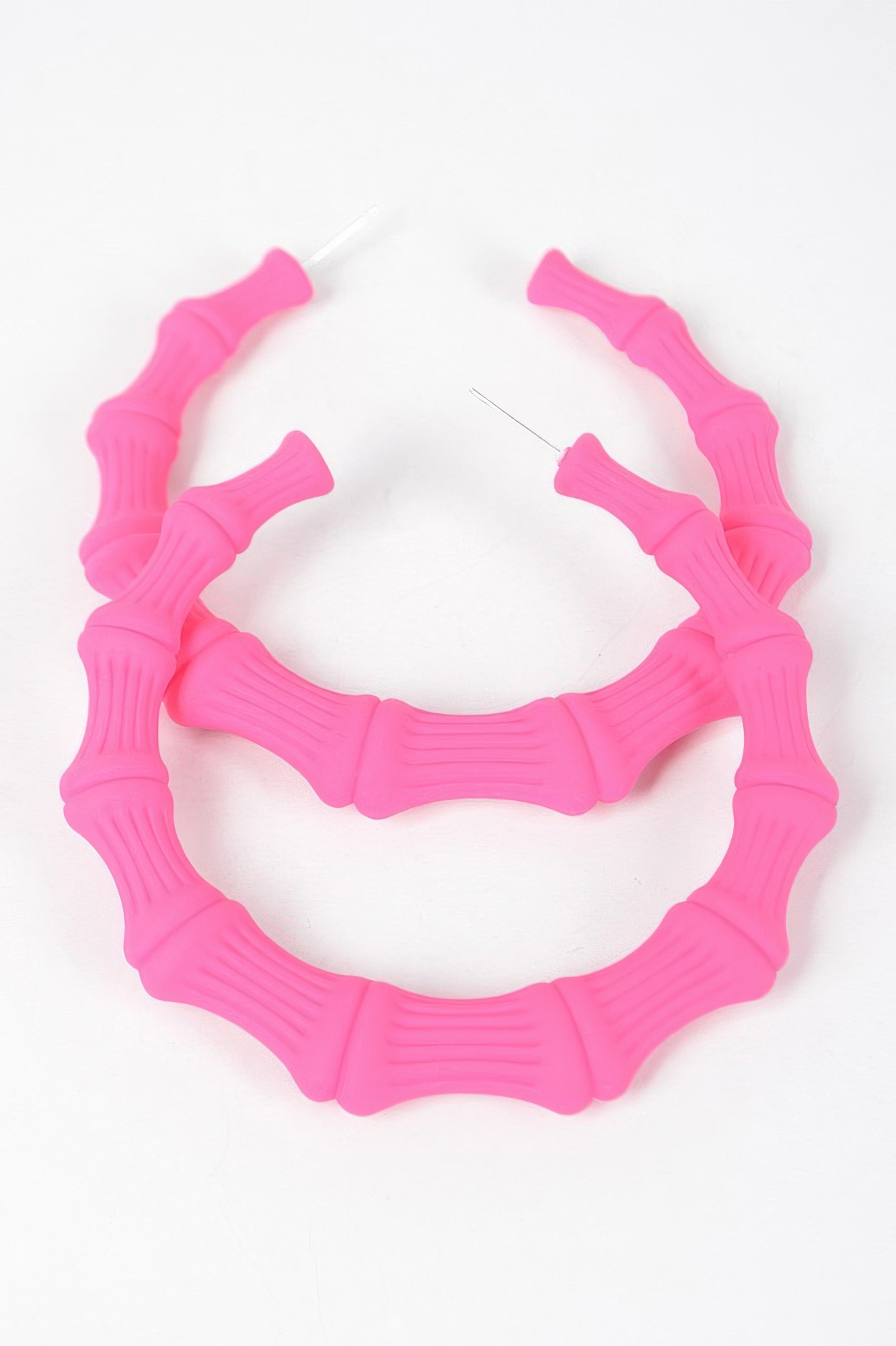 These color paint bamboo shape earrings deliver vibrant style with bold form. Designed with a circular silhouette, they make a striking visual statement. The painted finish adds artistic flair while remaining lightweight. Ideal for expressive, fashion-forward looks. A standout piece that elevates any outfit.