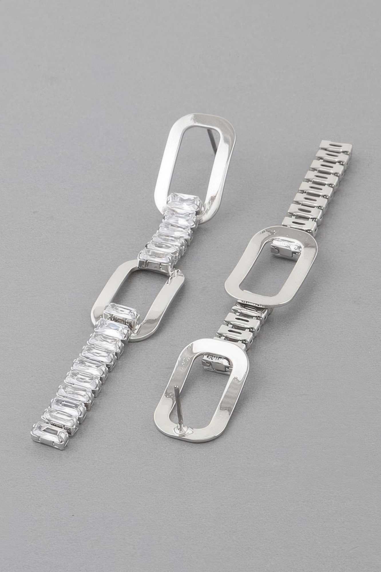 The Crystal Chain Drop Earrings combine elegant sparkle with graceful movement. Designed with delicate chains adorned with crystal accents, these earrings create a flowing drop silhouette that catches light beautifully. The slender design elongates the neckline while maintaining a refined and balanced appearance. Each crystal detail adds subtle brilliance without overpowering the overall look. These earrings are perfect for both casual outfits and evening styling. Their lightweight construction ensures comfortable wear throughout the day or night. With their shimmering detail and graceful design, they are a stylish addition to any jewelry collection.