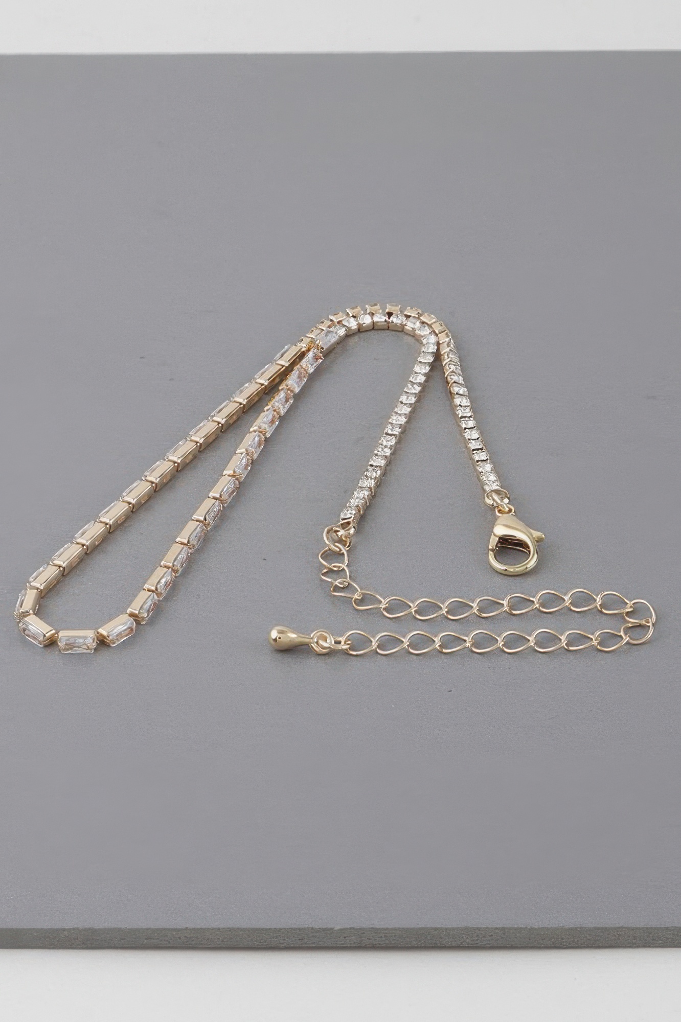 The Cubic Crystal Jewel Necklace offers radiant sparkle with a refined and timeless design. Featuring brilliant cubic crystal accents, this necklace creates a polished focal point that enhances both everyday outfits and special occasion looks. The elegant arrangement of stones catches the light beautifully, delivering subtle shine with every movement. Its graceful silhouette sits comfortably along the neckline, making it easy to style alone or layered with other pieces. Lightweight and versatile, it brings effortless sophistication to your jewelry collection. This necklace is a classic accessory designed to highlight brilliance and elegance.