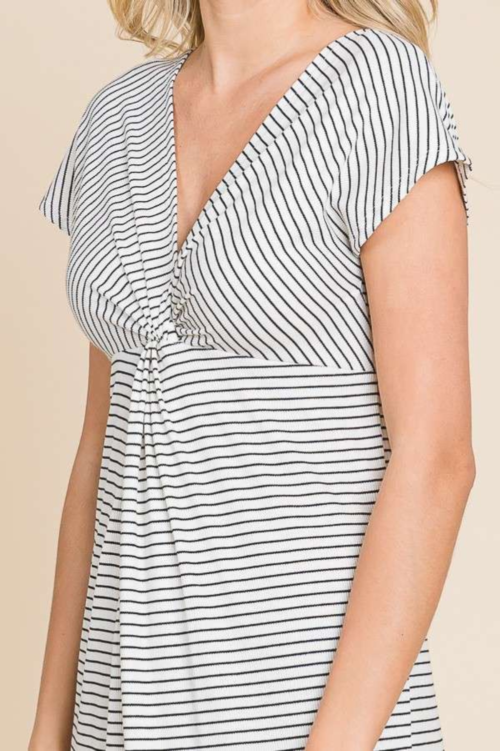The Striped Twisted Detail Dress is a stylish and modern choice for any occasion. The twisted detail adds a unique and eye-catching element to this classic striped design. Perfect for a day out with friends or a special event, this dress is sure to turn heads. The flattering silhouette and versatile stripes make it a wardrobe staple. Pair it with heels for a sophisticated look or dress it down with sandals for a more casual vibe. Stay on-trend and fashionable with the Striped Twisted Detail Dress.