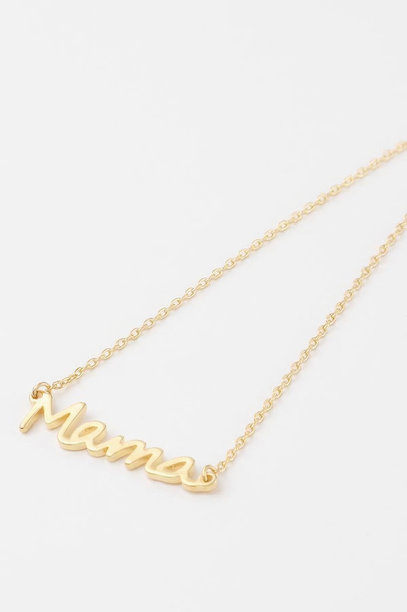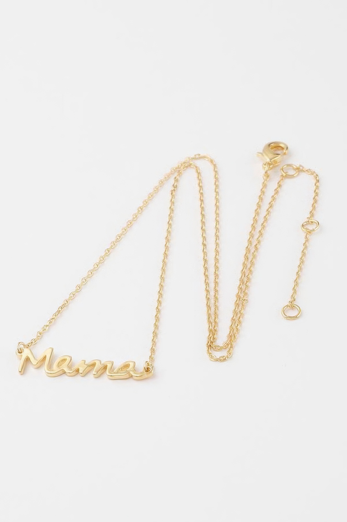 The Cursive Mama Script Necklace celebrates motherhood with a stylish and meaningful design. Featuring the word “Mama” in elegant cursive script, this necklace offers a heartfelt accessory that can be worn every day. The delicate chain enhances the graceful lettering while maintaining a lightweight and comfortable feel. Its simple yet expressive design makes it a thoughtful gift for mothers or a personal keepsake. The versatile style pairs beautifully with casual outfits or layered jewelry looks. The polished finish adds a refined shine that complements any wardrobe. This necklace combines sentiment and style in one timeless piece.