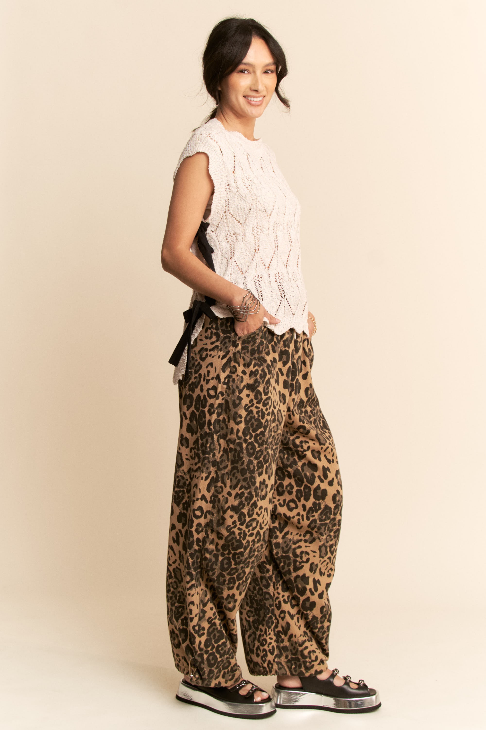 - Features: Openwork, Tied