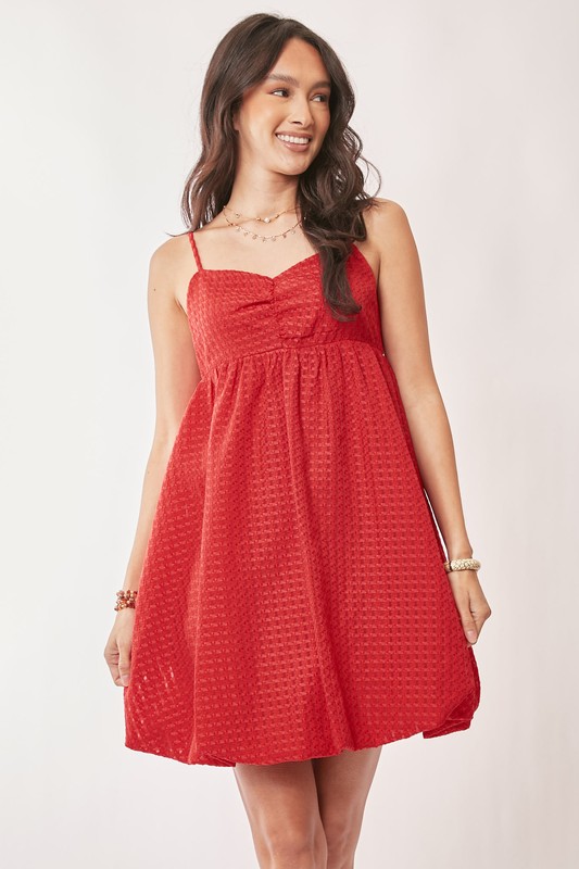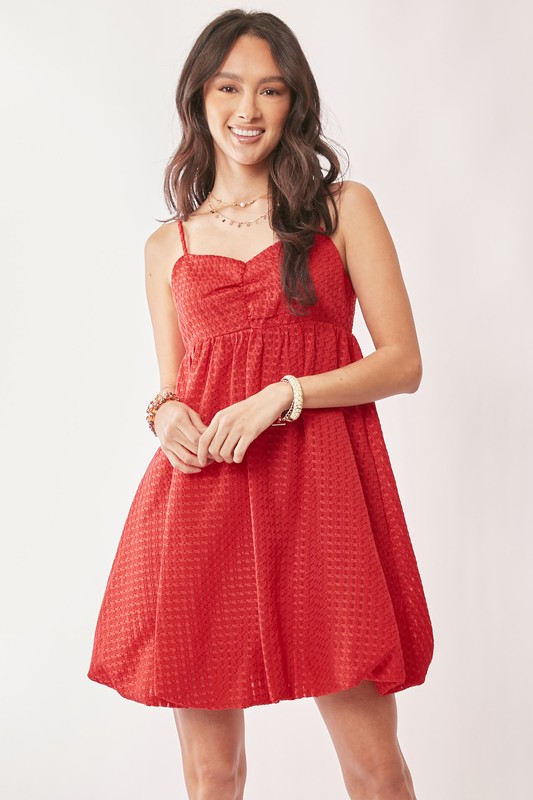 This textured sweetheart neckline bubble hem dress is a charming and feminine choice for a special occasion. The sweetheart neckline adds a romantic touch, while the textured fabric brings depth and interest to the design. The bubble hem creates a playful and whimsical silhouette, perfect for dancing or twirling the night away. Whether for a wedding, cocktail party, or any dressy event, this dress is sure to make a stylish statement.