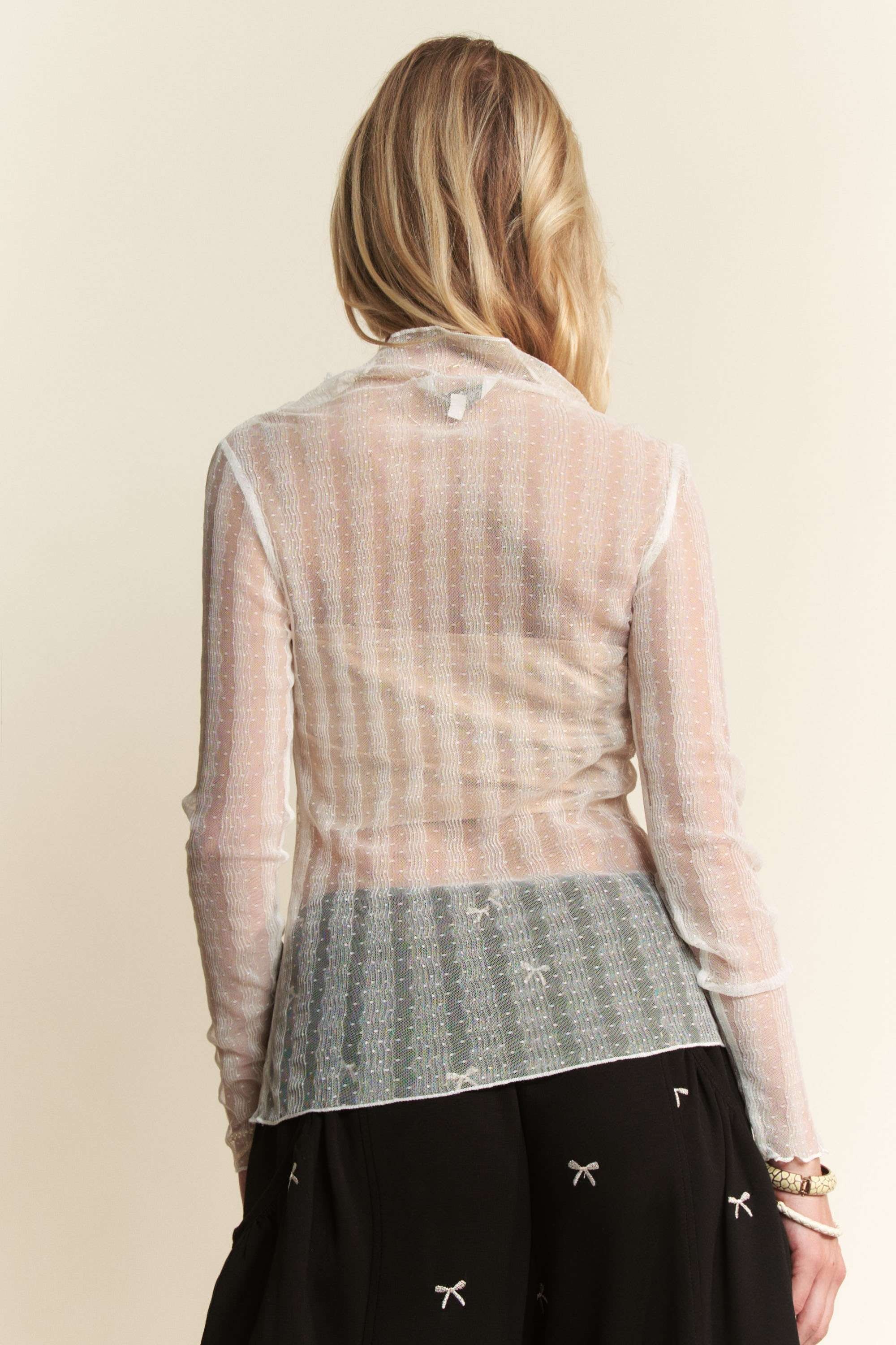 This refined mesh top combines elegance with contemporary style. Made from high-quality sheer mesh fabric featuring a subtle ribbed texture pattern. The mock turtleneck and long sleeves create a sophisticated silhouette. The semi-transparent nature of the fabric adds a delicate feminine touch while maintaining modesty. Perfect for layering over camisoles or as part of a layered ensemble. The soft blush pink color adds versatility and pairs beautifully with both casual and dressy outfits. Ideal for year-round wear and suitable for both office and evening occasions.