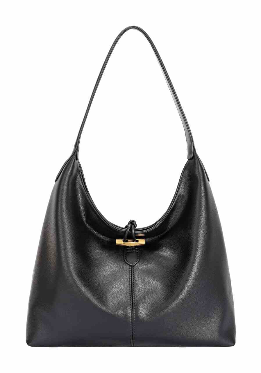 This premium shoulder bag features a classic hobo-style design. The spacious slouchy silhouette offers ample storage space while maintaining an elegant minimalist aesthetic. The comfortable single shoulder strap provides easy carrying, while the timeless black color ensures effortless coordination with any wardrobe.