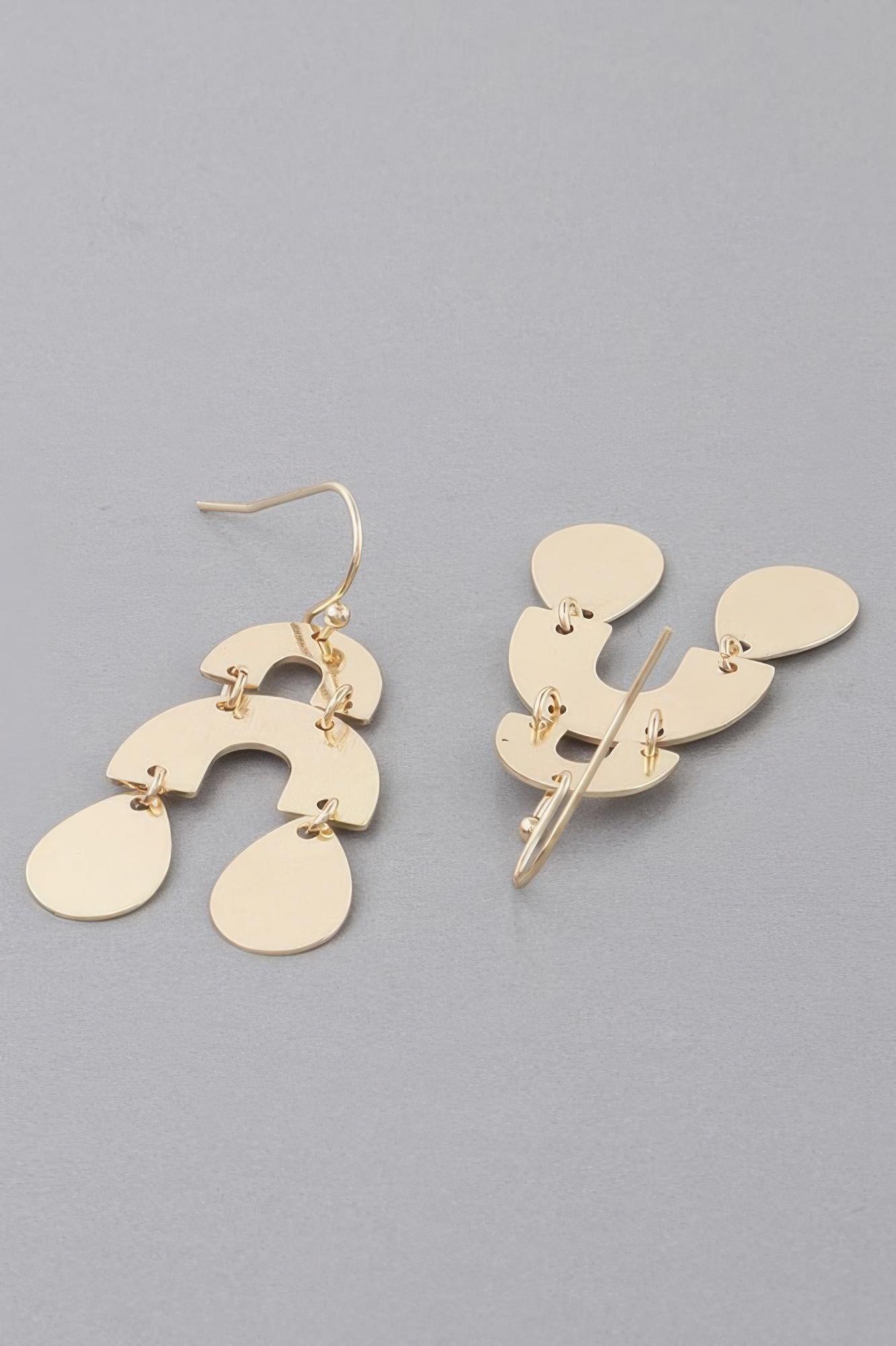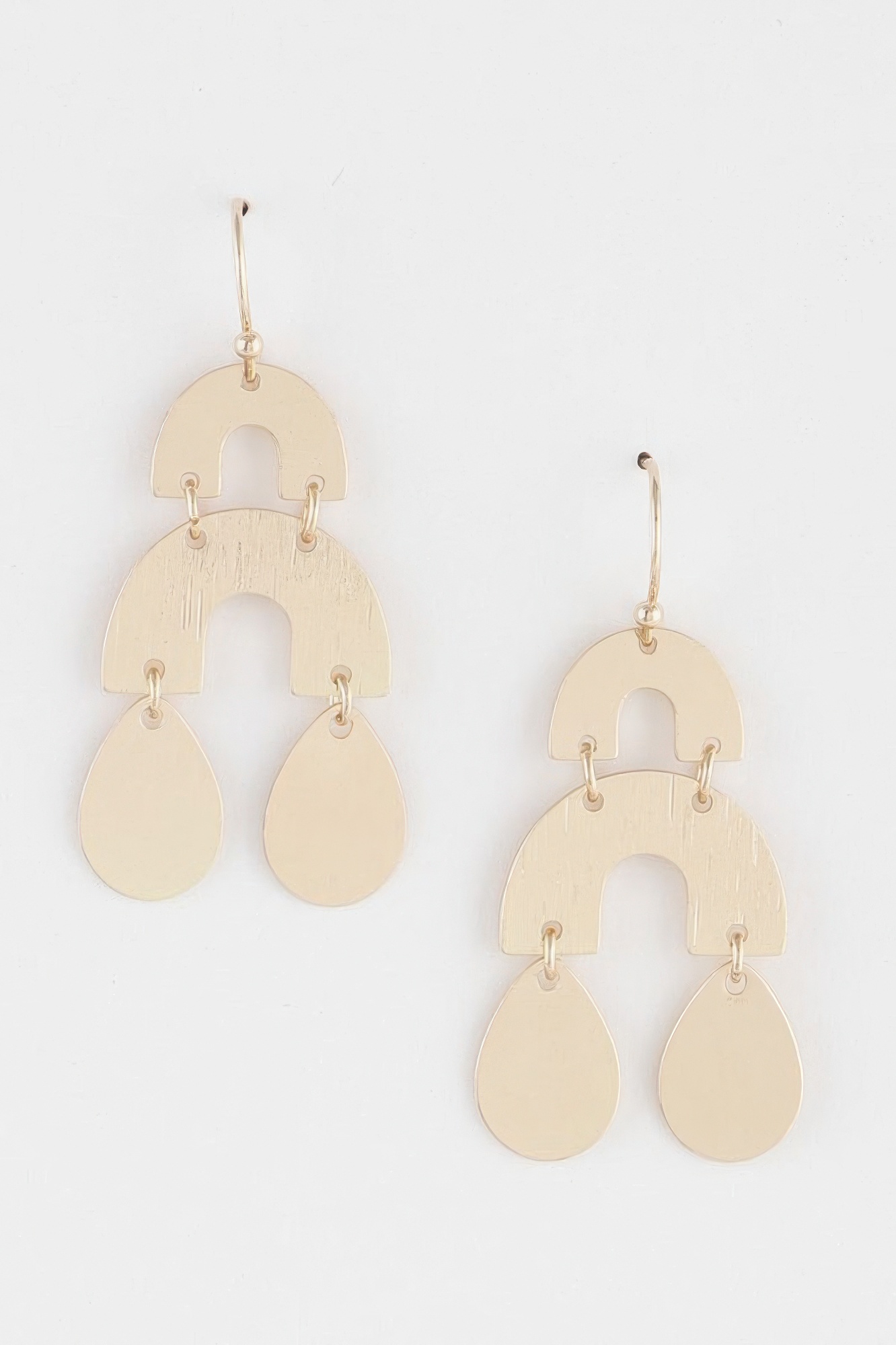 The Double Arch Teardrop Earrings offer a refined blend of modern geometry and classic elegance. Designed with two arch shaped layers forming a teardrop silhouette, these earrings create a balanced and eye catching look. The layered structure adds dimension while maintaining a sleek and polished appearance. Their elegant drop design enhances the neckline and adds graceful movement. Despite their structured shape, the earrings remain lightweight and comfortable for extended wear. They pair effortlessly with both everyday outfits and sophisticated evening styles. With their modern design and timeless appeal, these earrings bring stylish versatility to any jewelry collection.