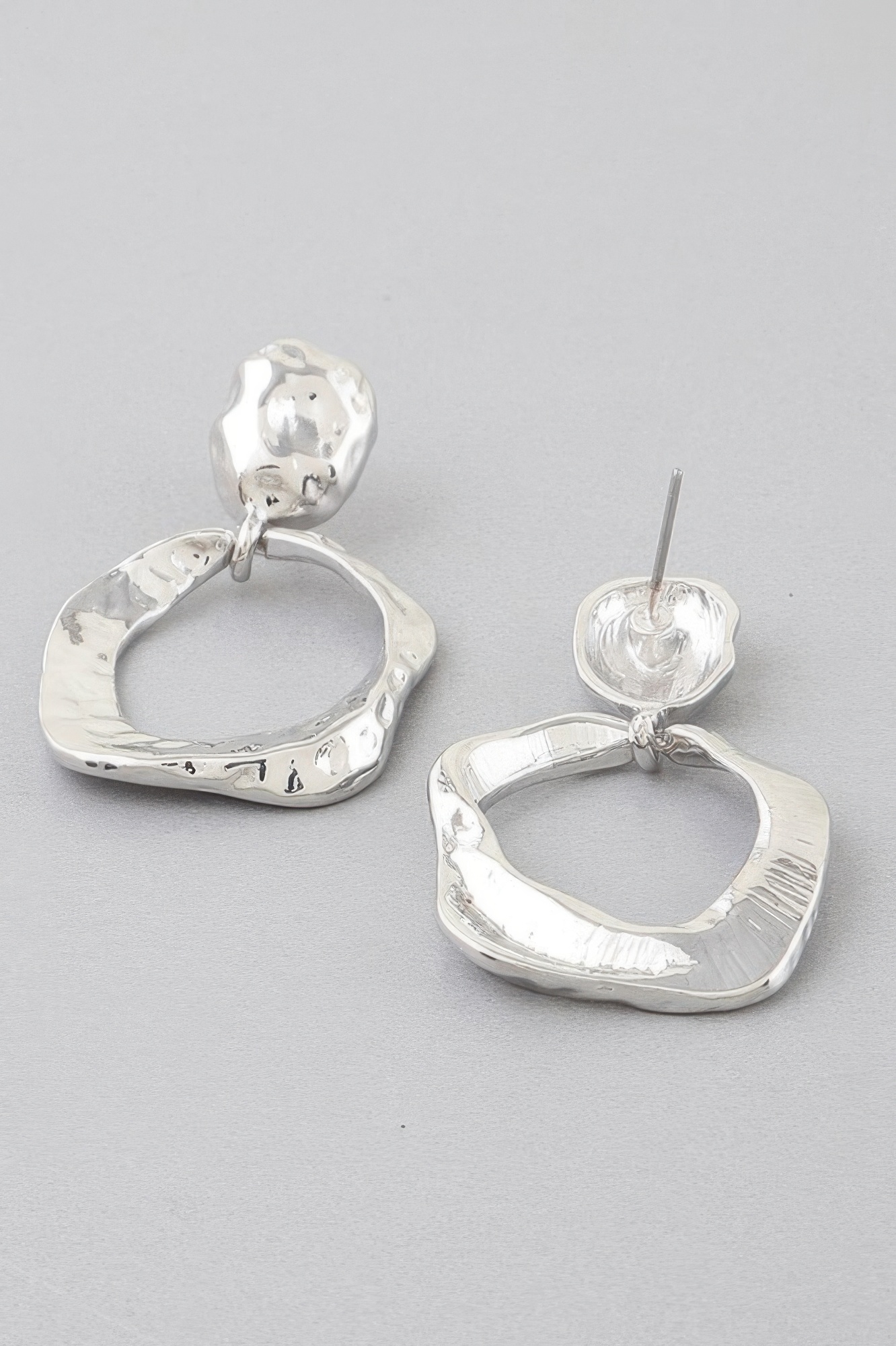 The Double Hammered Open Disc Drop Earrings deliver bold texture with an elegant edge. Crafted with open disc shapes and a hammered metal finish, these earrings offer an artisanal feel that elevates both casual and dressy looks. Lightweight yet impactful, their dimensional design brings movement and shine to every turn. Ideal for adding statement flair without the weight.