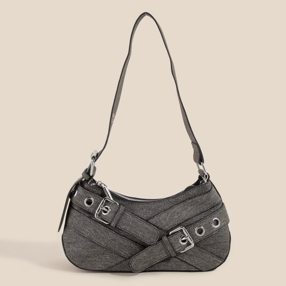 Introducing the Denim Belt Accent Shoulder Bag, a trendy and versatile accessory for your everyday looks. This shoulder bag features a stylish denim material with a chic belt accent for a touch of modern flair. Perfect for adding a cool and casual vibe to your outfits, whether you're running errands or heading out with friends. The spacious interior offers ample room for your essentials, making it both fashionable and functional. Elevate your style with the Denim Belt Accent Shoulder Bag and make a fashion statement wherever you go!