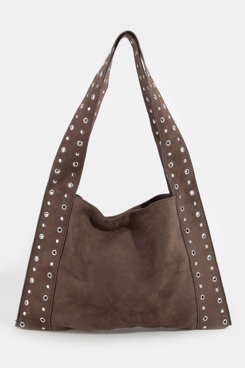 Elevate your accessories collection with the Grommet Strap Suede Shoulder Bag, a stylish and versatile piece that combines luxurious suede material with edgy grommet detailing. The grommet strap adds a touch of modern flair to the classic shoulder bag design. Crafted from high-quality suede, this shoulder bag offers both durability and sophistication. The adjustable strap allows for comfortable wear and customization. Make a fashion statement with the Grommet Strap Suede Shoulder Bag, perfect for adding a chic touch to any outfit.