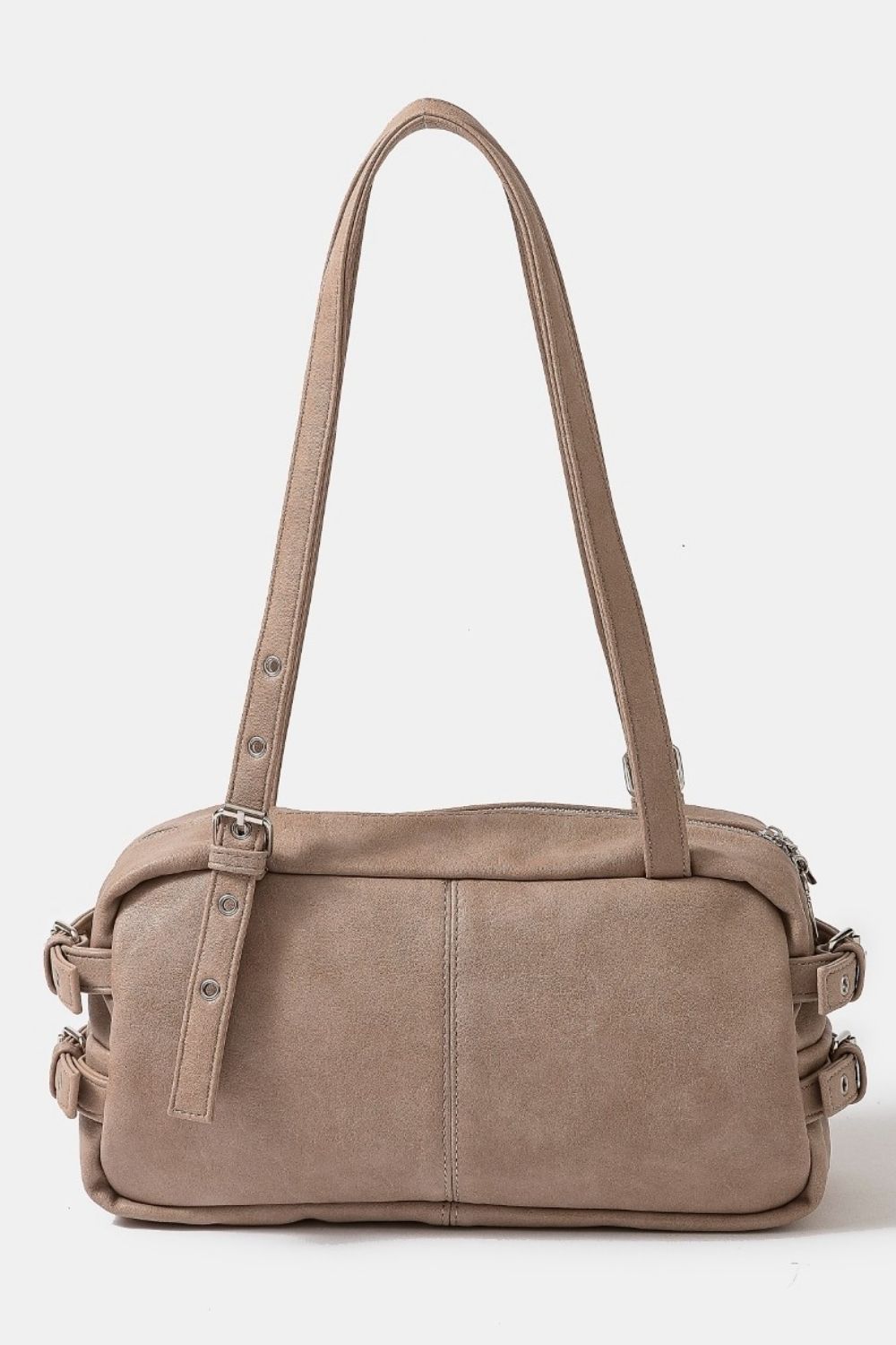 This elegant shoulder bag features premium genuine leather construction in a sophisticated taupe color that complements any wardrobe. The bag showcases excellent craftsmanship with reinforced stitching and durable metal hardware including adjustable buckle straps for customized comfort. Its structured rectangular design offers ample storage space while maintaining a sleek silhouette. The soft leather material develops a beautiful patina over time, making it a long-lasting investment piece. Perfect for professional settings, casual outings, or special occasions, this versatile shoulder bag combines functionality with timeless style.