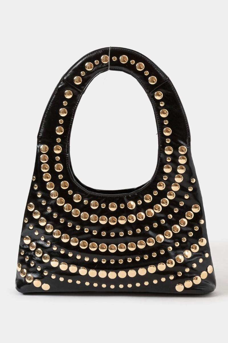 This stylish shoulder bag is crafted from high-quality genuine leather and adorned with eye-catching studs, offering a unique and fashionable look. The hobo style and top handle provide comfortable carrying options, while the durable construction ensures long-lasting use. Perfect for adding a touch of edgy elegance to any outfit, this bag is a versatile accessory for everyday wear or special occasions. The secure closure keeps your belongings safe and organized.