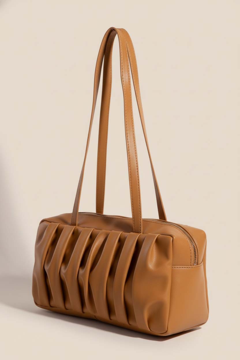 This Pleated Leather Rectangle Hand Bag exudes sleek elegance and a sophisticated design. Crafted from high-quality leather, it offers both style and durability. The pleated detailing adds a unique touch to this timeless accessory. With its rectangular shape, it provides ample storage space for your essentials. Elevate your outfit with this chic and versatile handbag today.