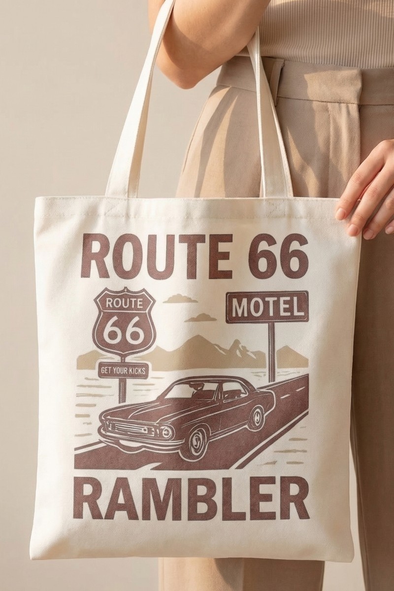 This Route 66 Rambler Tote Bag captures the bold, retro spirit of classic American road trips with its vintage-inspired Route 66 motif. Made from durable, lightweight material, it provides ample storage for daily essentials, travel items, or weekend adventures. Sturdy shoulder straps ensure comfortable, hands-free carrying, while the nostalgic print adds rugged, wanderlust charm to any casual outfit. Practical, roomy, and full of vintage personality, it’s perfect for errands, travel, or anyone who loves retro highway style.