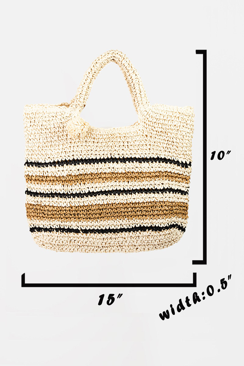 Product Description The Striped Straw Braided Tote Bag is a trendy and summery accessory that combines beachy vibes with a chic aesthetic. This tote bag features a unique blend of striped patterns and braided straw construction for a stylish look. The colorful stripes add a playful and eye-catching element to the design, perfect for adding a pop of color to your outfit. With its spacious interior and durable straw material, this tote bag is both fashionable and practical for carrying your essentials. Whether you're lounging by the pool or exploring a new town, this bag is a versatile choice. Embrace the sunny and carefree spirit of summer with the Striped Straw Braided Tote Bag, a must-have accessory for your warm-weather adventures. Elevate your summer ensemble with this chic and on-trend tote that exudes casual sophistication and beachside charm.Bag size: LargeMaterial: 100% paperImportedProduct measurements:One Size:Actual Length 15 in, Actual Height 10 in, Actual Width 0.5 in, Weight 14.11 oz