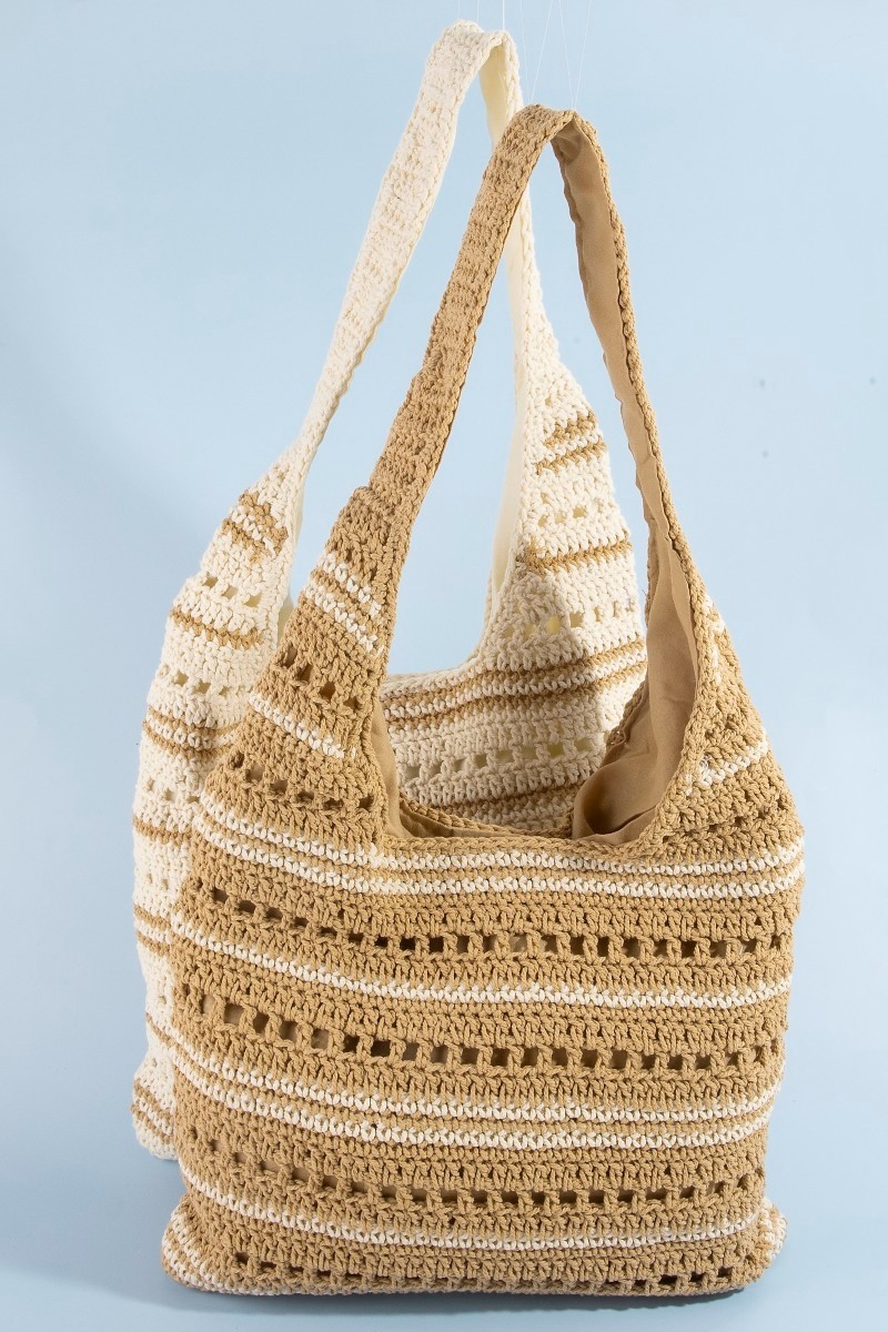 The Two-Tone Stripe Straw Tote Bag is a stylish and functional accessory for your summer outings. Featuring a chic striped design in two tones, this tote bag adds a pop of color and texture to your ensemble. Crafted from durable straw material, it exudes a beachy and casual vibe. The spacious interior provides ample room for all your essentials, making it perfect for beach days or shopping trips. Carry your belongings in style and stay on-trend with this versatile and eye-catching straw tote bag that complements a variety of summery looks.