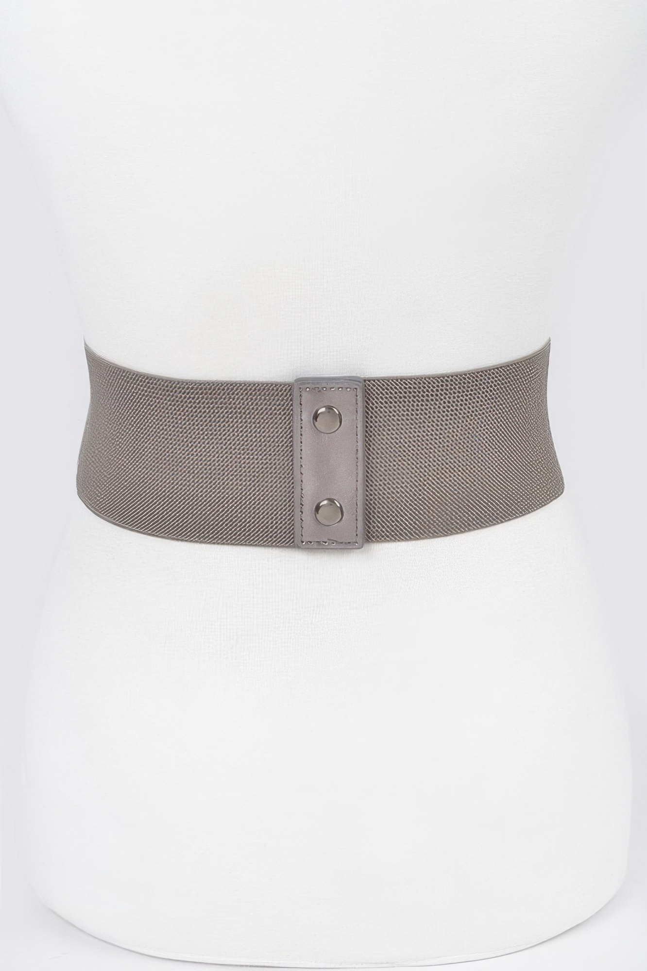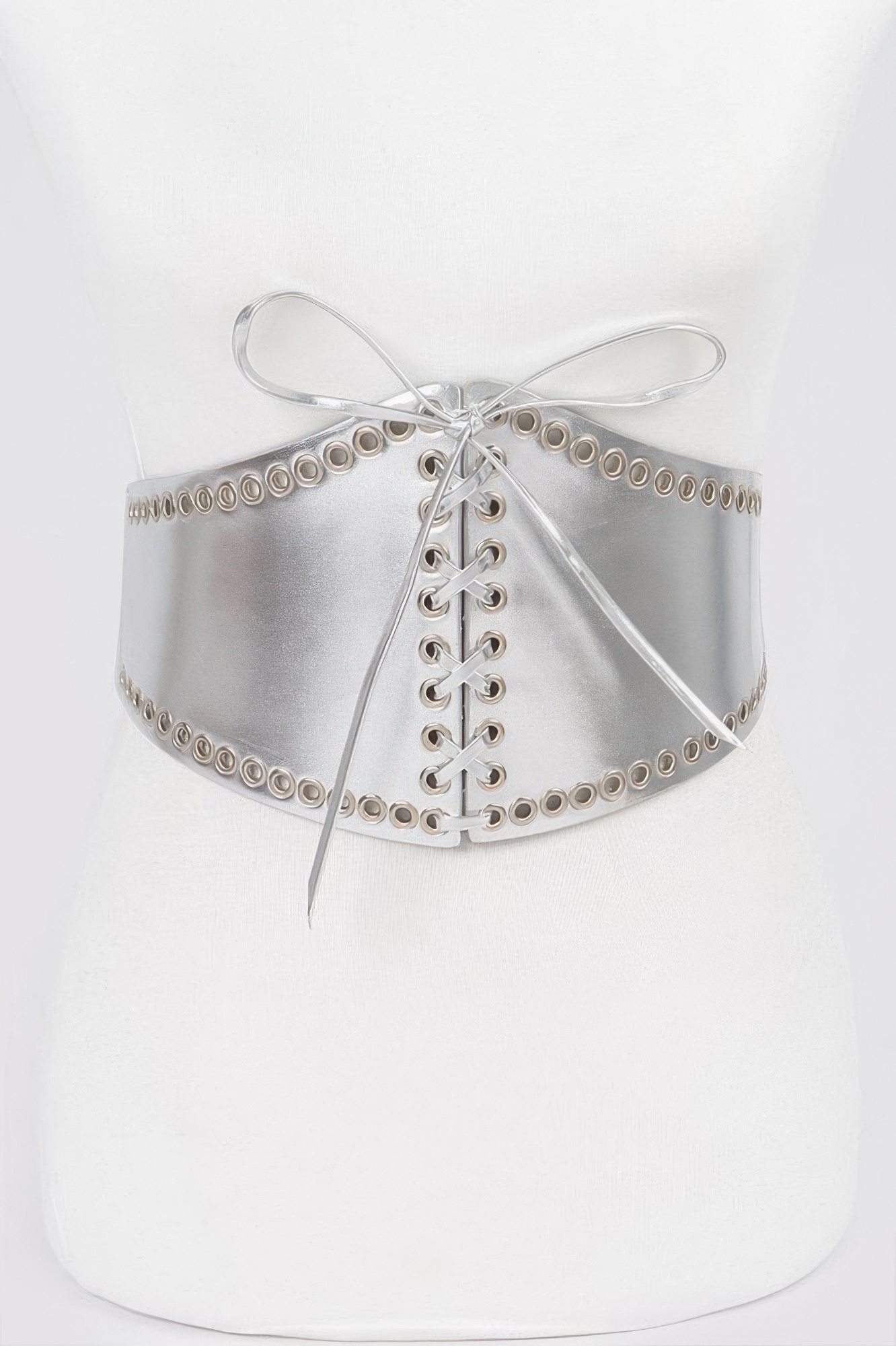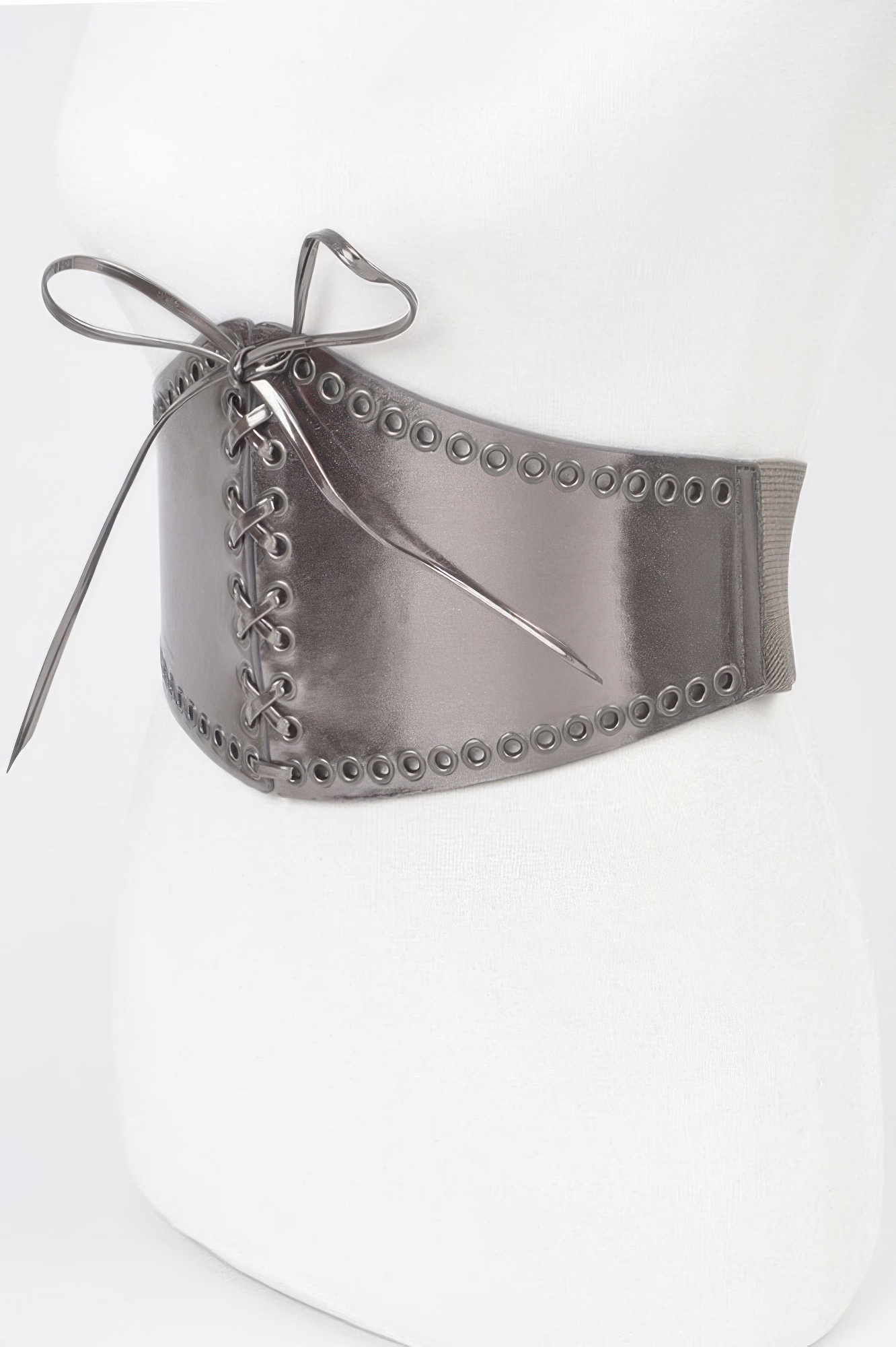 Faux Leather Eyelet Corset Elastic Belt adds a sculpted look to your outfit with its structured design and wide silhouette. Crafted from a blend of polyurethane and elastic, it cinches the waist comfortably while adding a bold statement. Eyelet detailing enhances its edgy appeal, perfect for layering over dresses, tunics, or oversized shirts. The elastic back ensures a flexible fit, making it both stylish and easy to wear. Measuring 6 inches wide and 29.5 inches long, this corset belt instantly elevates any ensemble.