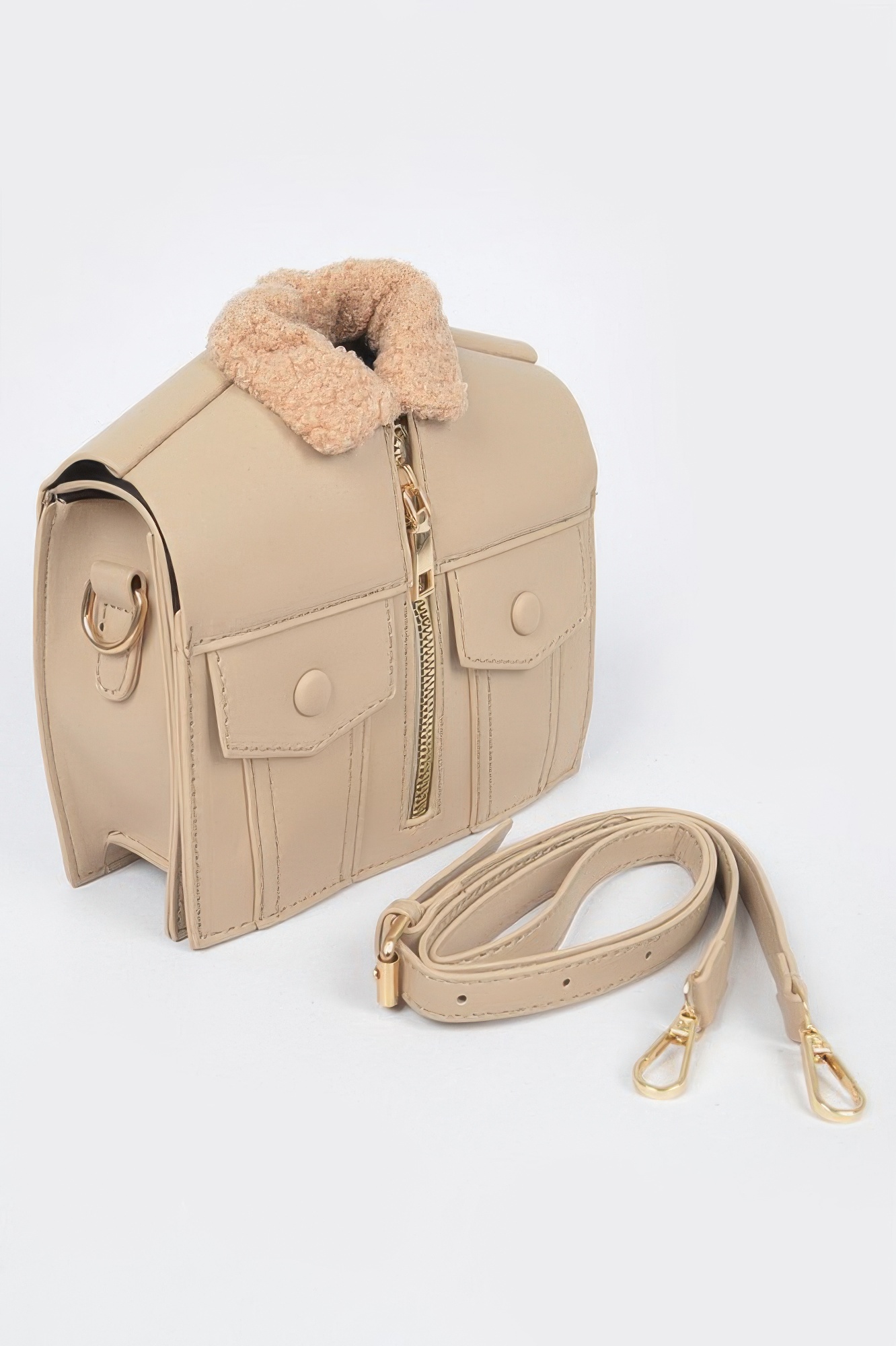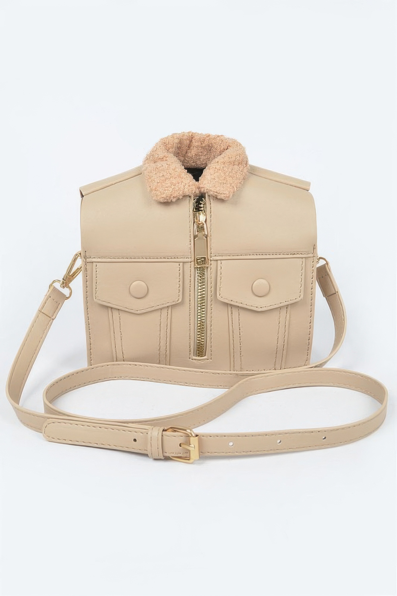 This faux leather fur jacket crossbody bag offers a bold blend of texture and structure. Designed with a unique layered look, it mimics the appeal of a jacket-inspired silhouette. The combination of smooth and soft elements adds depth and visual interest. Its compact size makes it ideal for everyday essentials, while the crossbody strap ensures hands-free convenience. A standout piece, it adds a distinctive finish to your outfit.