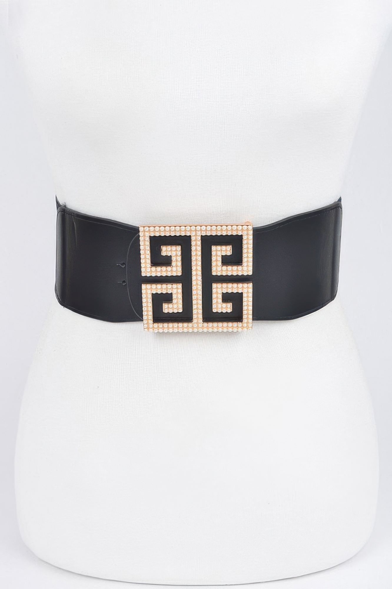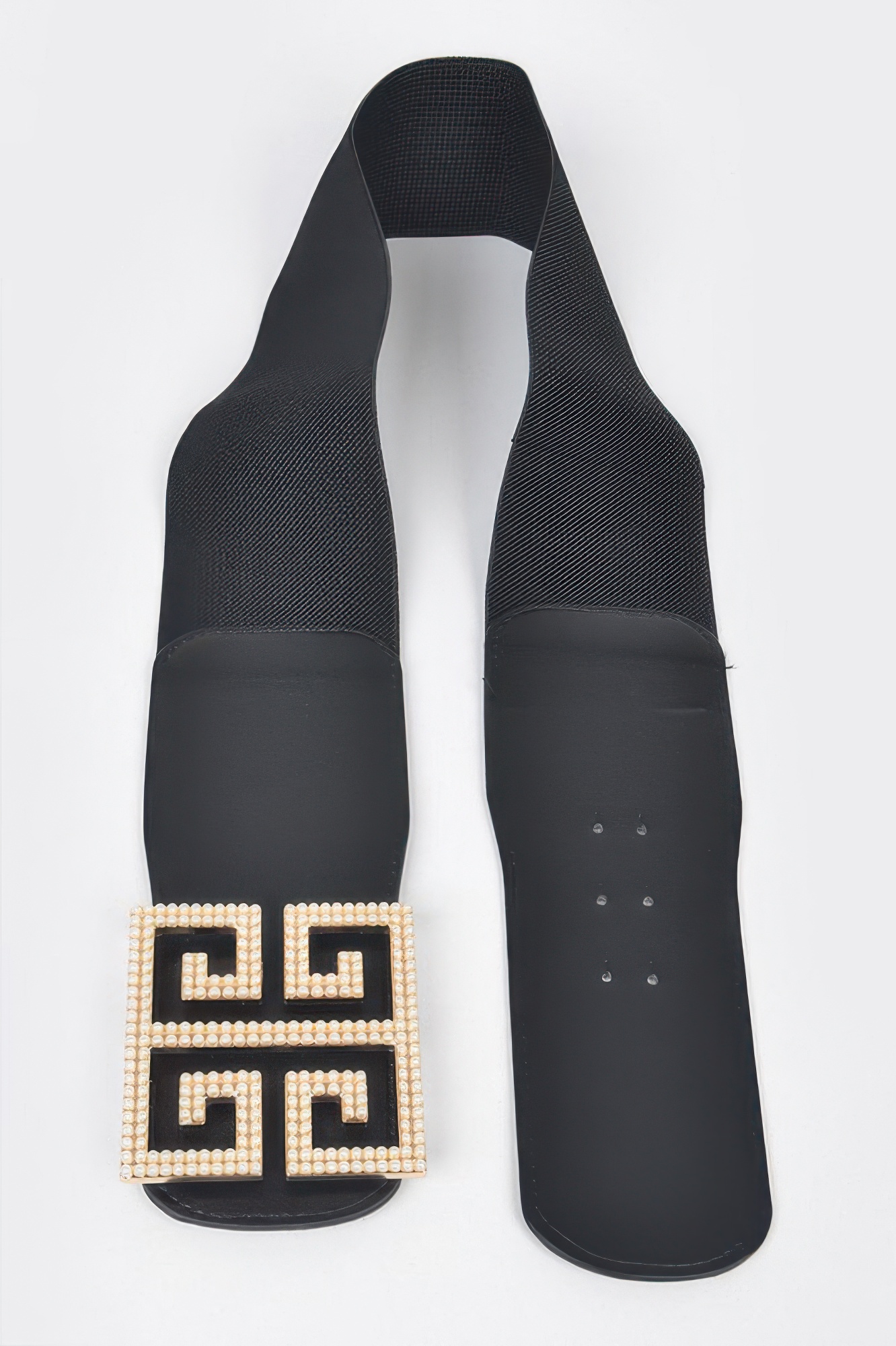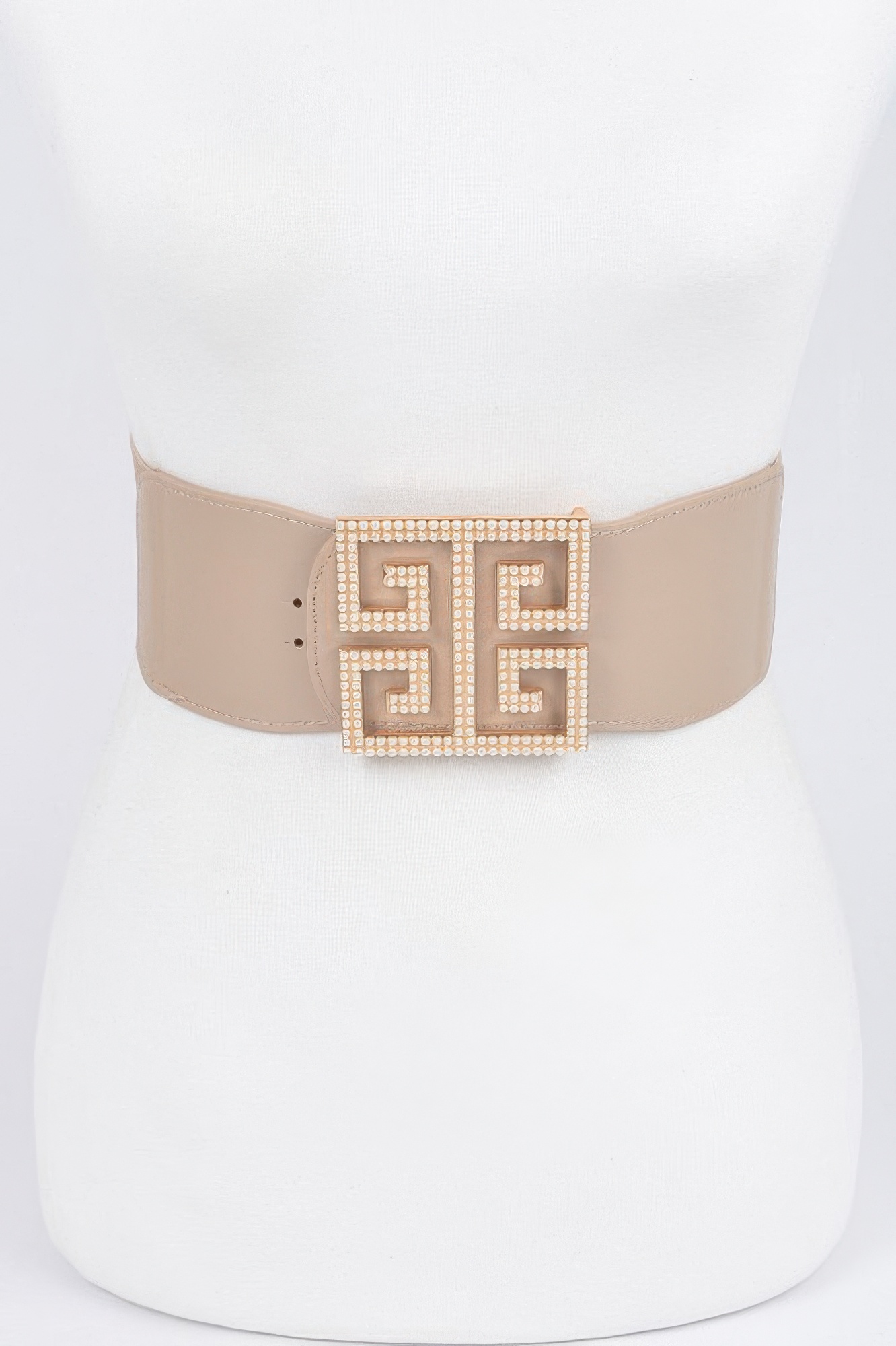 This faux pearl buckle stretch belt features a refined design highlighted by a pearl-accented buckle for a classic and elegant look. The stretch construction provides a comfortable and flexible fit, while the structured width enhances its silhouette. Its smooth finish adds to its polished appearance. Easy to style, it complements both casual and dressy outfits. A sophisticated accessory, it brings timeless charm to any look.