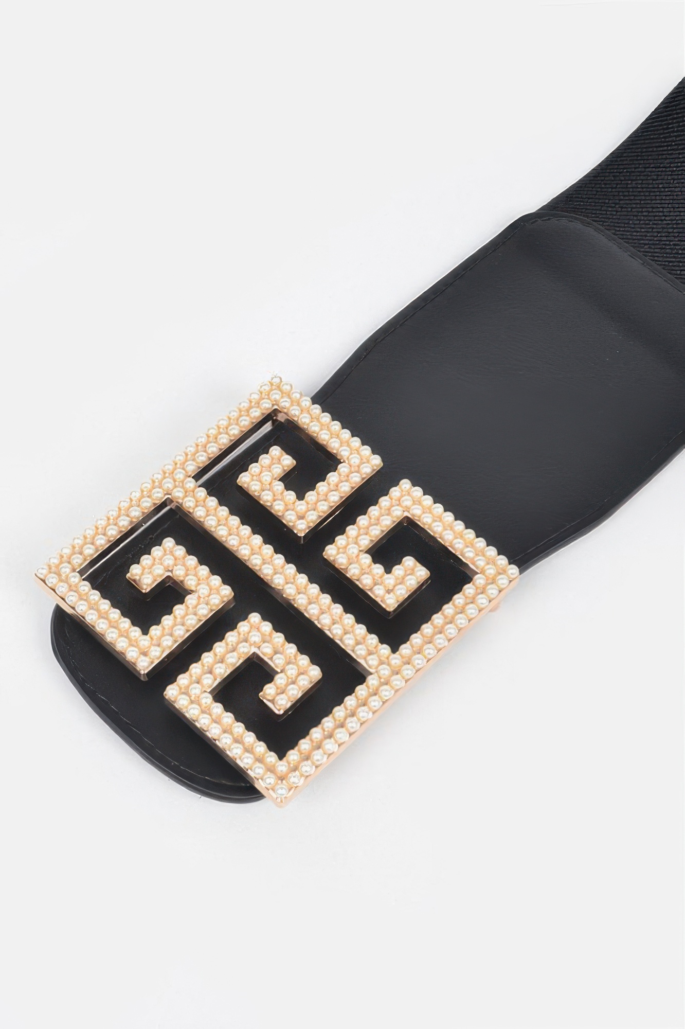 Stretch belt with faux pearl buckle