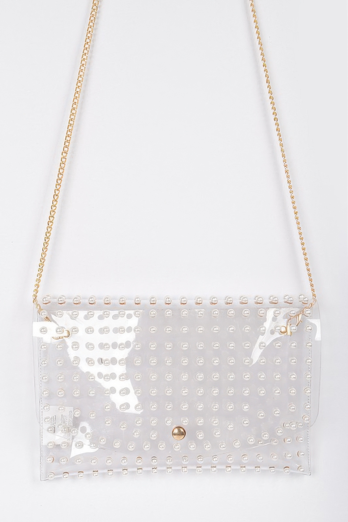 Refined yet playful, the Faux Pearl Studded Transparent Envelope Clutch is a standout statement piece. Featuring a clear body with faux pearl accents, this clutch blends modern transparency with classic elegance. Its envelope shape offers just enough structure while keeping the look light and fresh. Perfect for weddings, date nights, or dressy events.