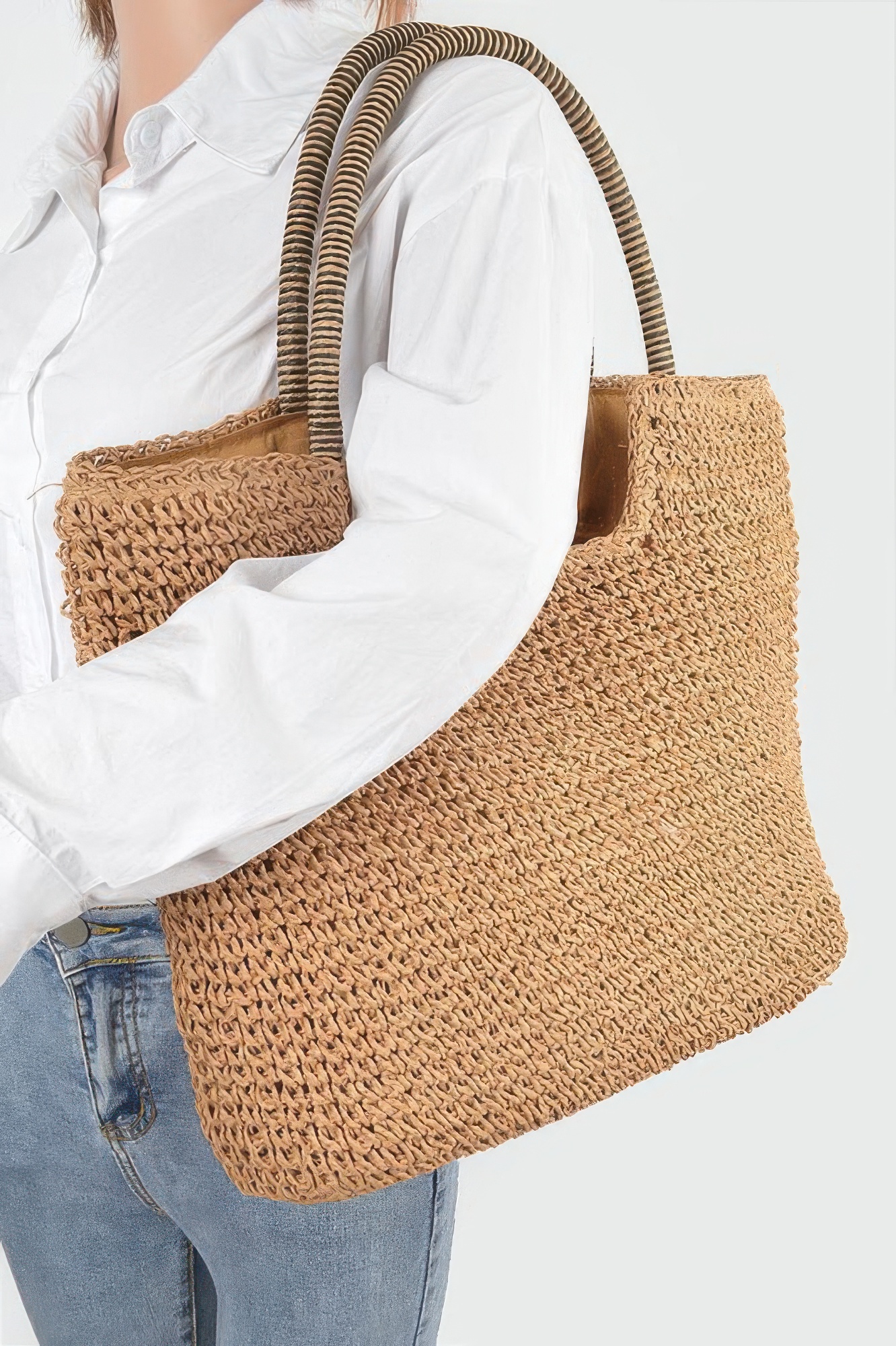 Carry your essentials in style with this faux straw tote bag, designed for both function and effortless appeal. The spacious interior provides ample room for daily necessities while maintaining a lightweight feel. Its woven texture adds a natural-inspired look that pairs well with warm-weather outfits. Structured yet easy to carry, it offers both durability and comfort. A versatile accessory, it transitions seamlessly from casual outings to weekend getaways.