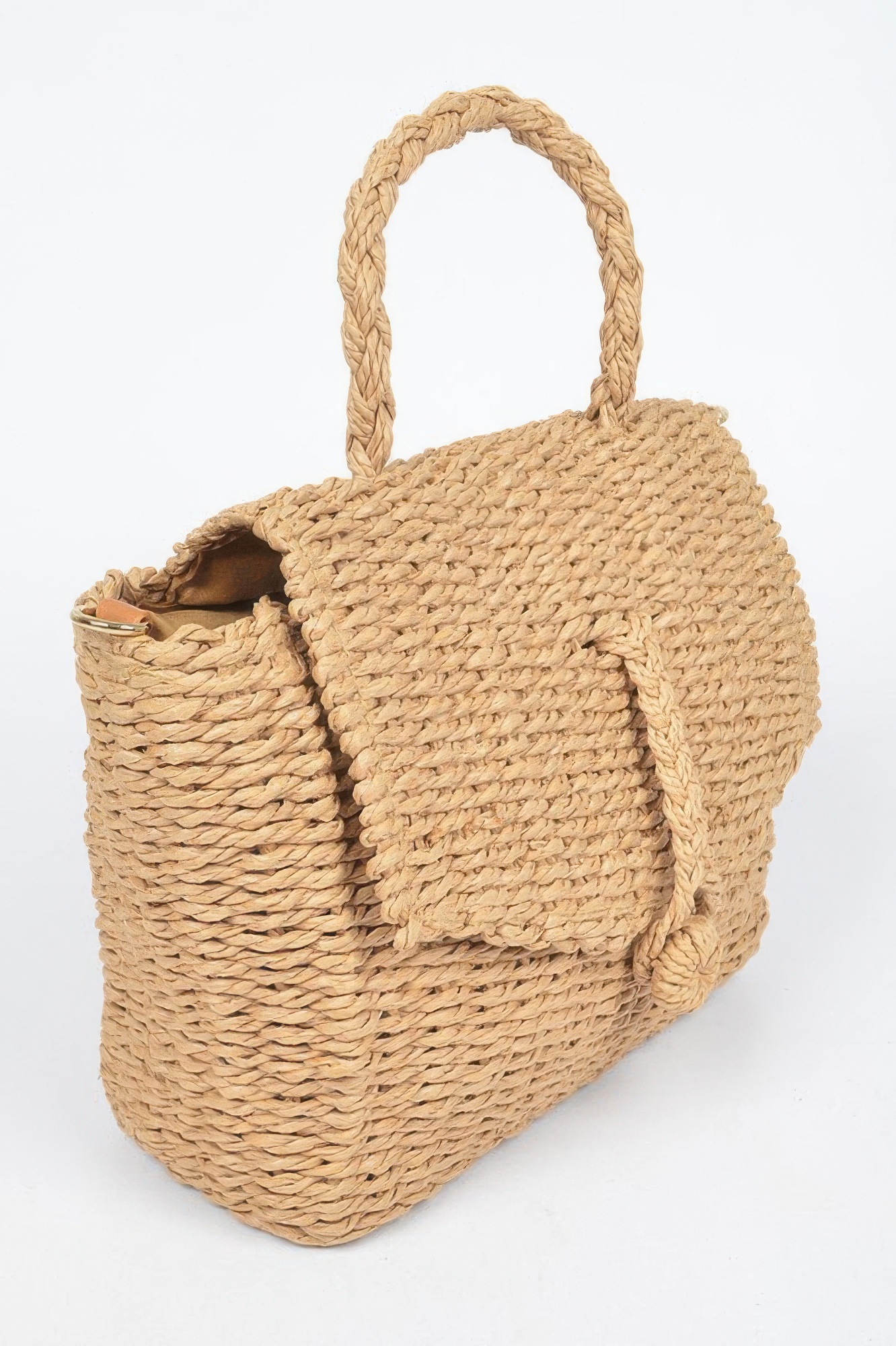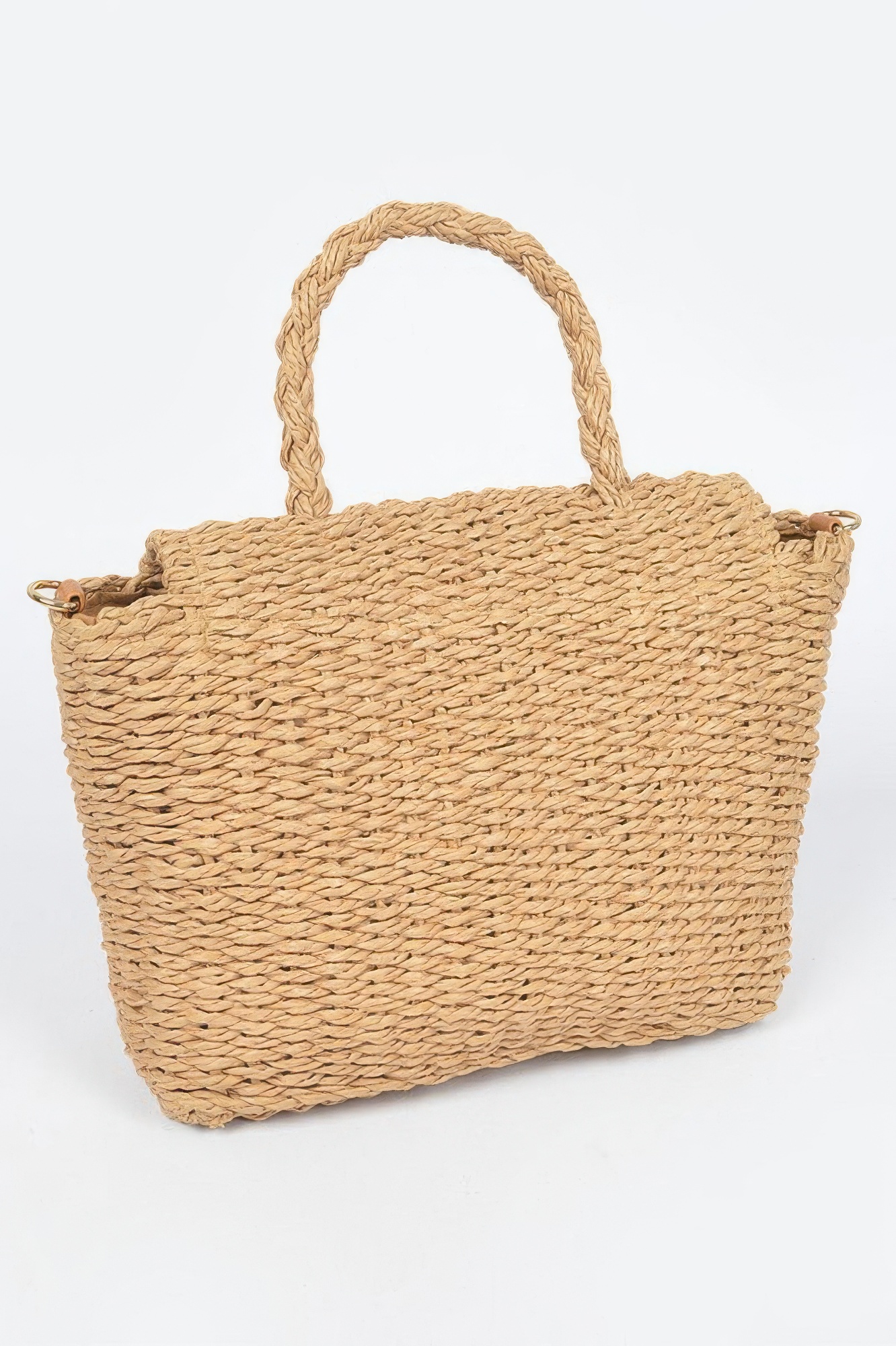 This faux straw weaved clutch bag offers a textured and refined look perfect for warm-weather styling. Designed with a structured silhouette, it maintains its shape while providing enough space for essentials. The woven exterior adds a natural-inspired touch that pairs effortlessly with casual and dressy outfits. Compact and easy to carry, it is ideal for day-to-night transitions. A versatile piece, it completes your look with understated charm.