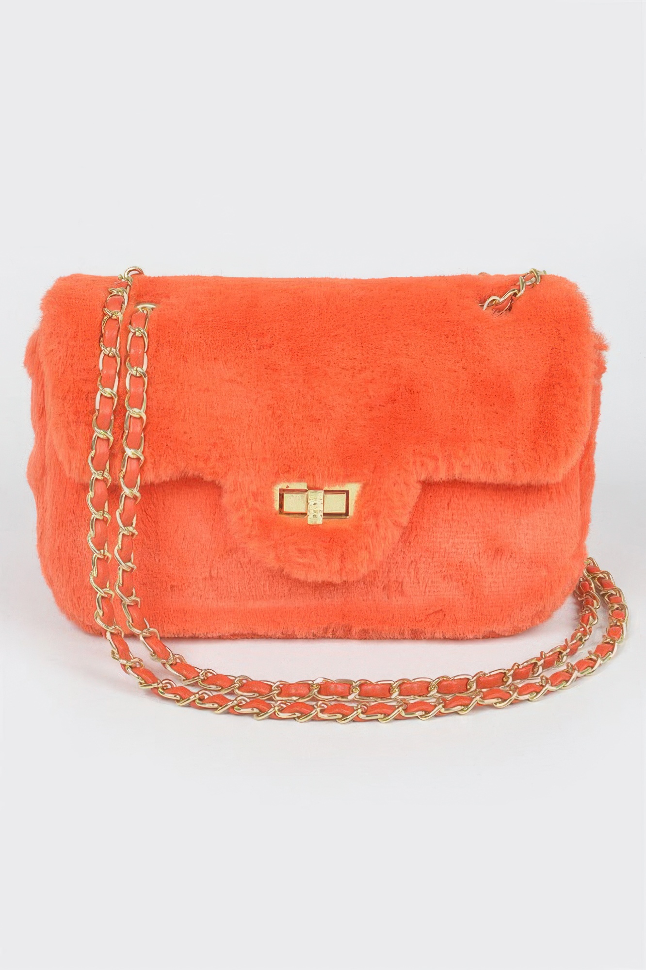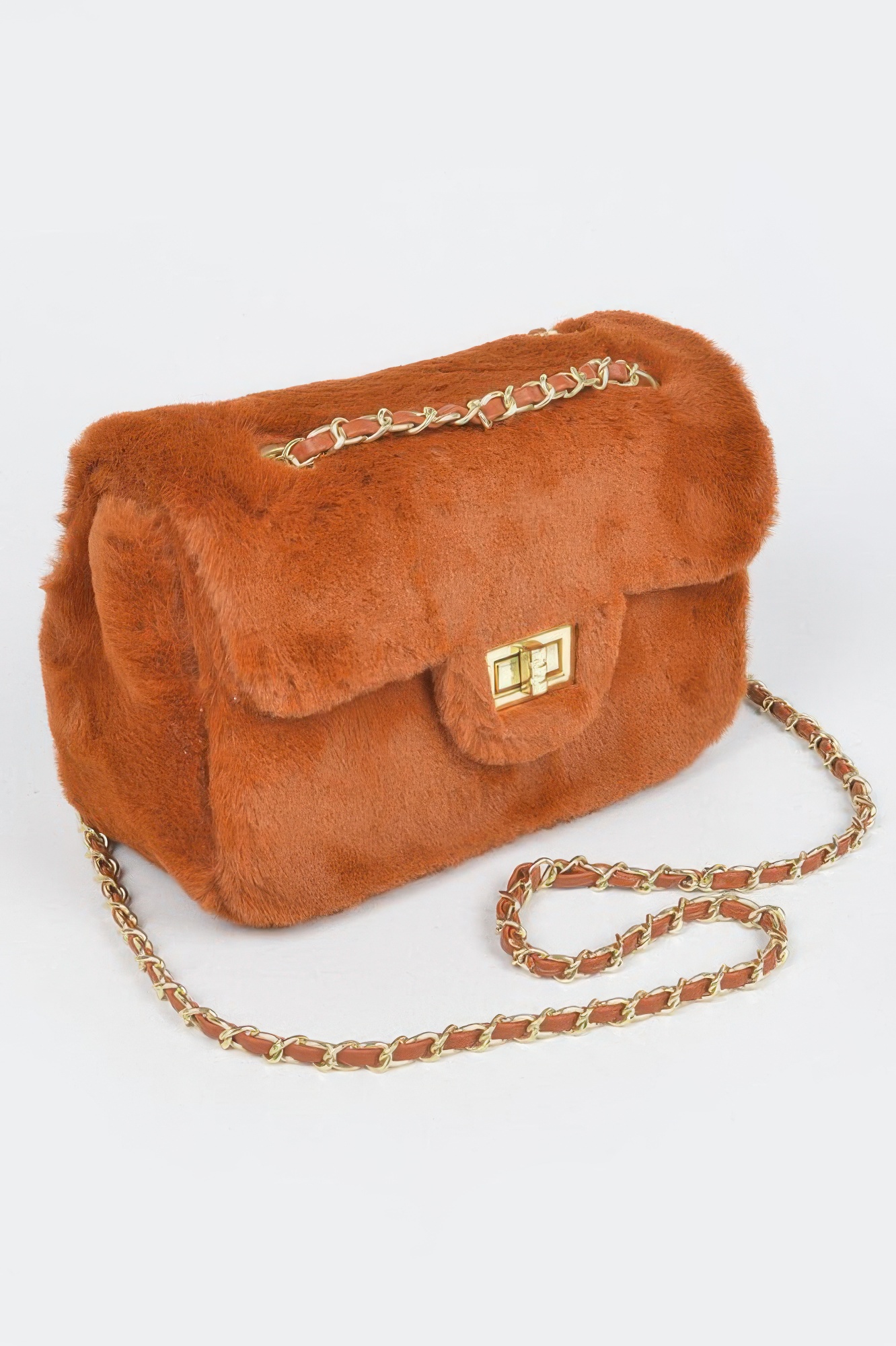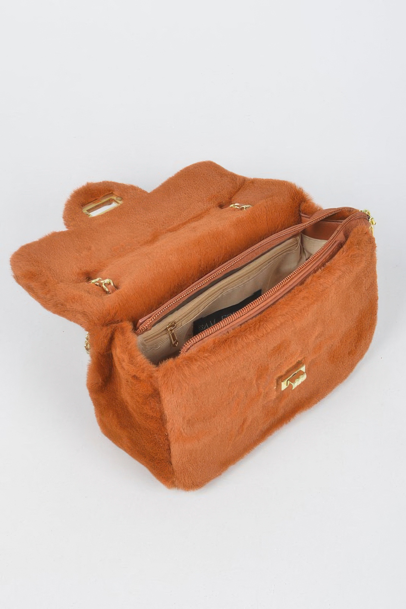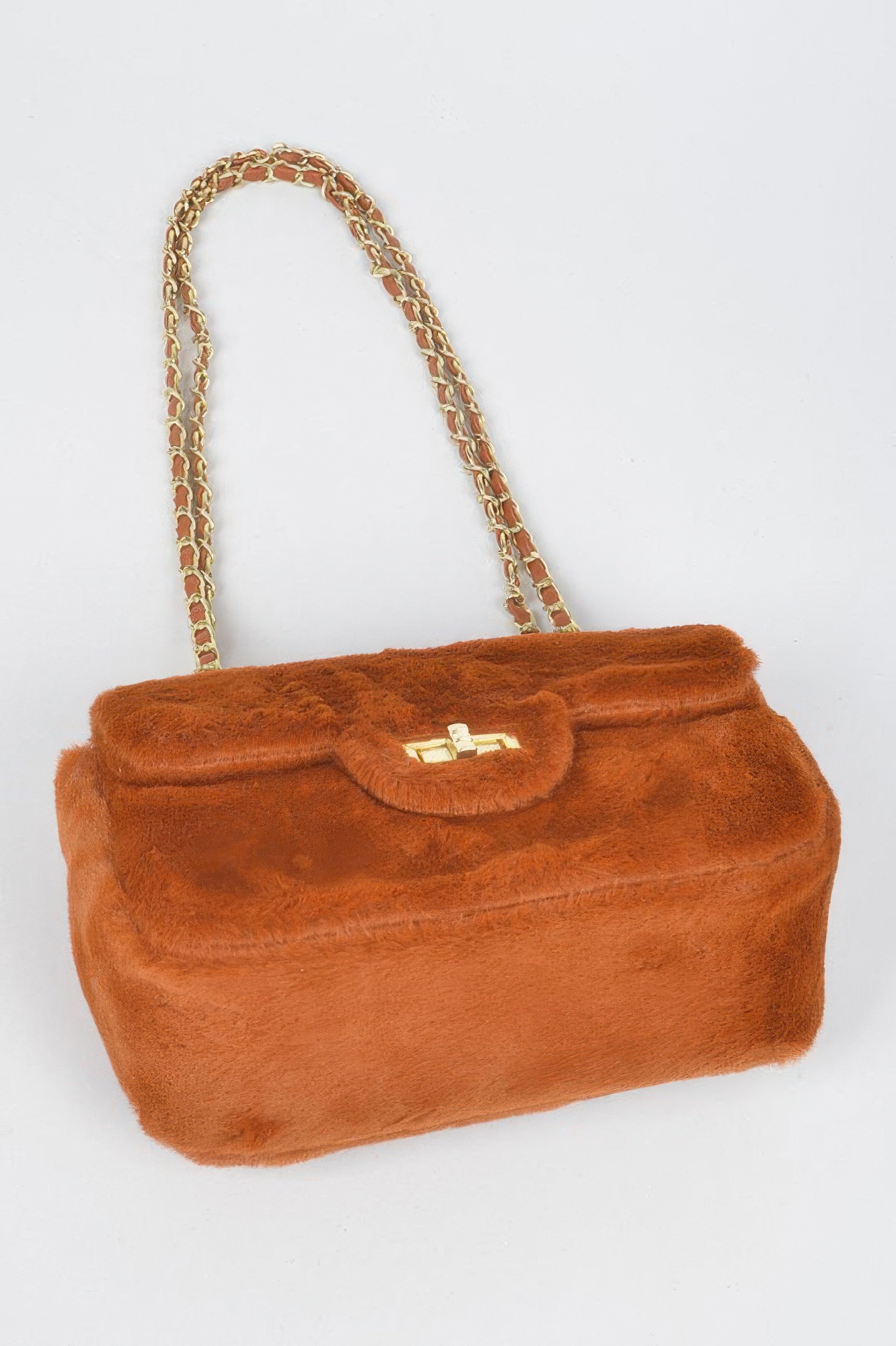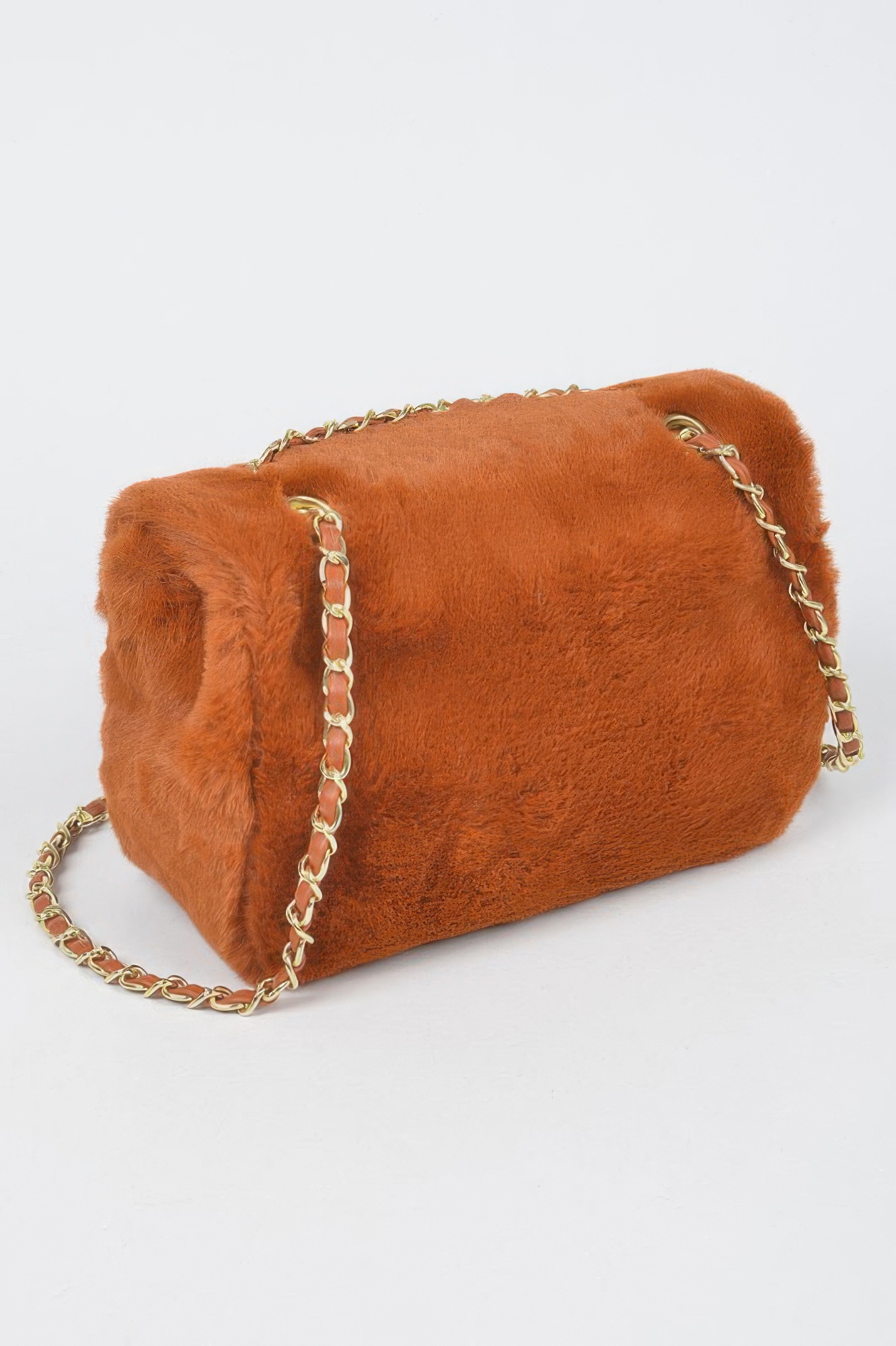This faux wool flap shoulder bag features a soft textured finish combined with a classic flap design for a clean and stylish look. The compact silhouette offers practicality while maintaining a polished appearance. Its structured form keeps essentials organized and accessible. Designed for comfortable shoulder wear, it is suitable for daily use. A refined accessory, it adds a subtle and cozy touch to your style.