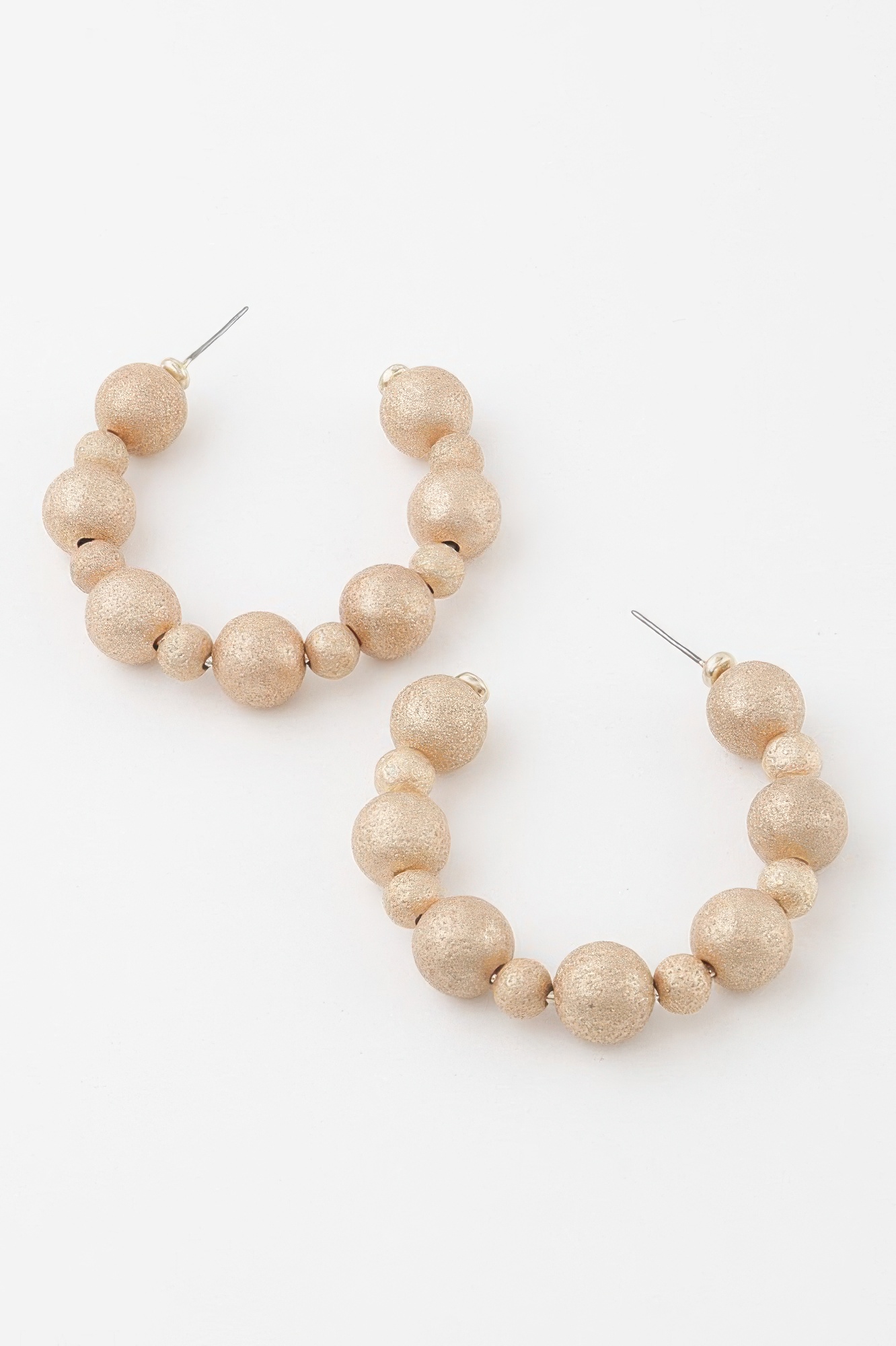 These glitter beaded hoop earrings add sparkle to a classic hoop silhouette. Designed with bead detailing, they create texture and shine without excess weight. The compact size keeps the look refined yet playful. Comfortable enough for extended wear. A versatile accessory for both casual and dressy looks.