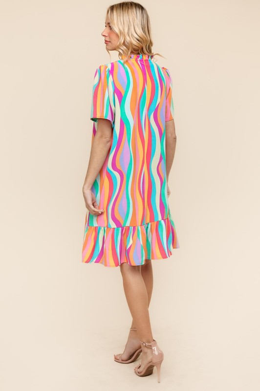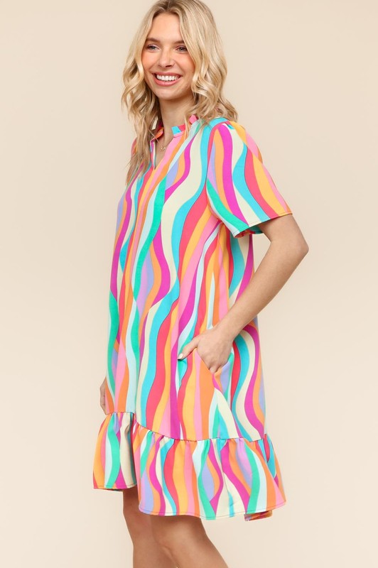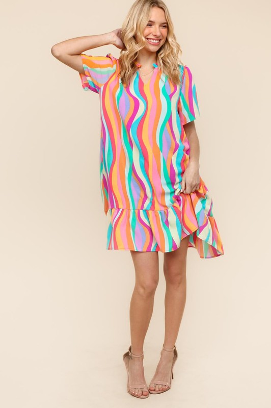 The Tiered Woven Ruffle Hem Dress is a feminine and romantic piece that exudes elegance and charm. The tiered design adds volume and movement to the dress, creating a flowy and flattering silhouette. The woven fabric lends a textured and polished look to the outfit. The ruffle hem adds a touch of whimsy and playfulness. This dress is perfect for various occasions, from brunch dates to garden parties, and can be styled with sandals or heels for a sophisticated ensemble.
