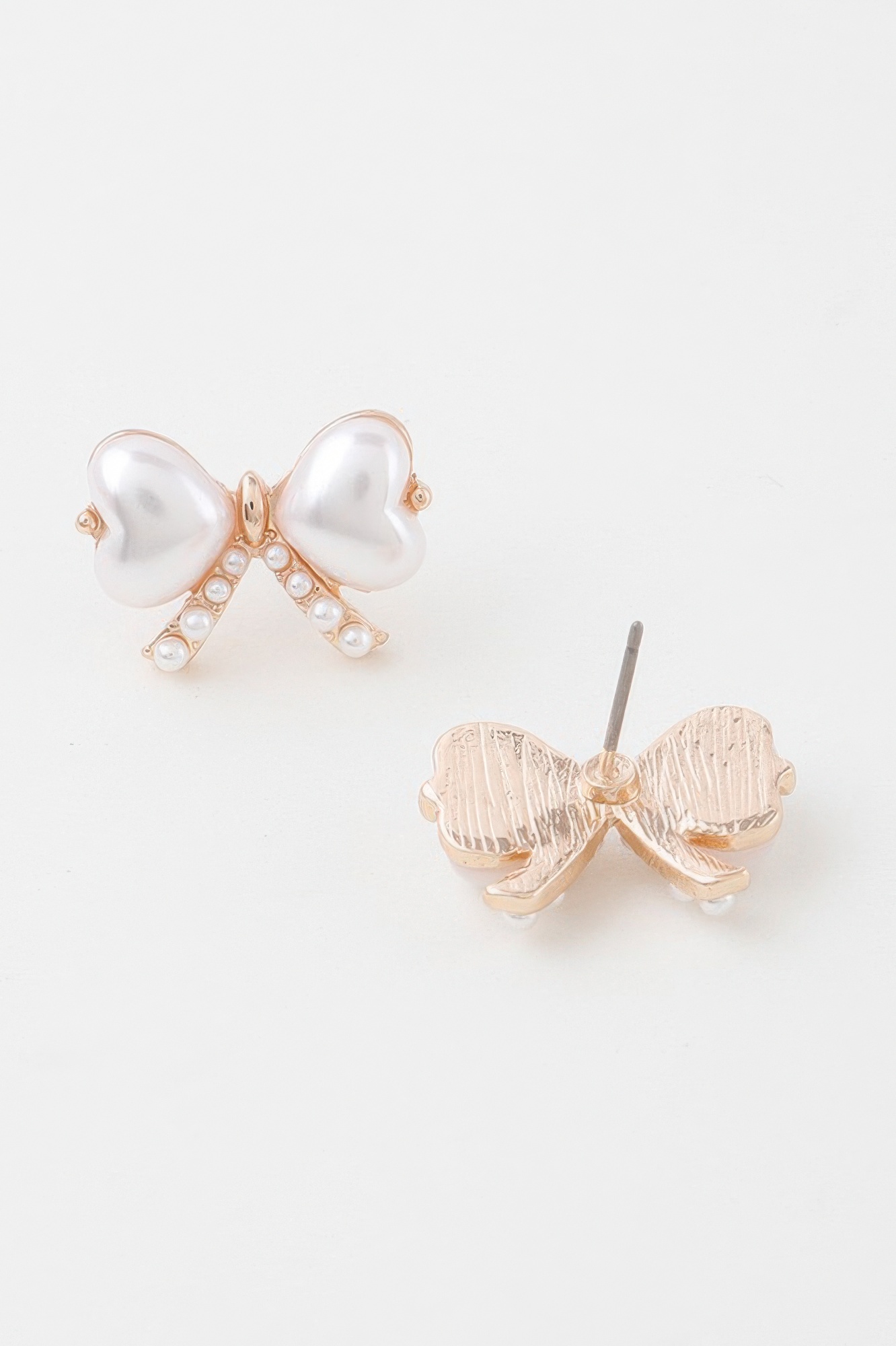 Delicate and sweet, the Heart Pearl Ribbon Earrings feature a petite heart silhouette with a pearl accent and ribbon-inspired detail. These compact earrings add a romantic, feminine finish to any outfit. Perfect for everyday styling or special occasions that call for a soft touch.