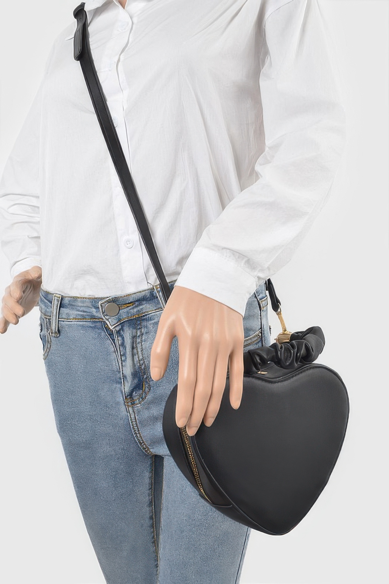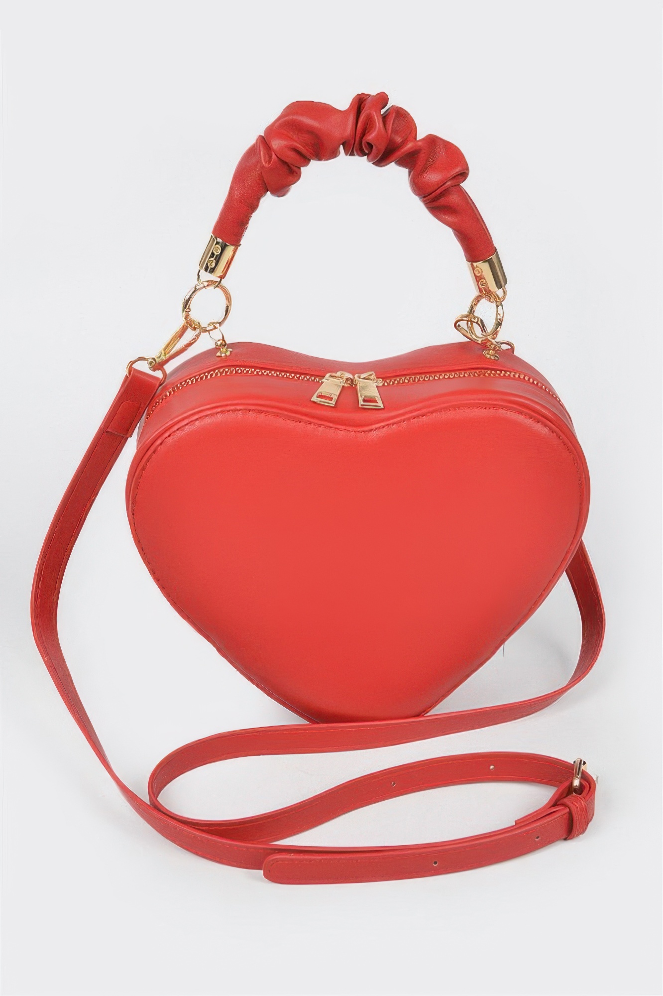Heart-shaped handbag with structured silhouette