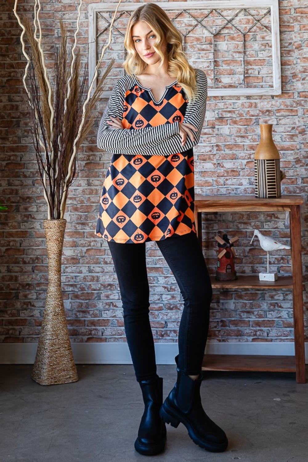 The checkered contrast striped long sleeve T-shirt is a stylish and eye-catching piece for your wardrobe. With its unique combination of checkered and striped patterns, this shirt offers a modern and trendy look. The long sleeves provide extra coverage and warmth, making it suitable for cooler days. This T-shirt can be dressed up or down, making it versatile for various occasions. The contrast detailing adds a fun twist to a classic design, adding personality to your outfit. Elevate your casual style with this statement-making checkered contrast striped long sleeve T-shirt for a fashionable and on-trend look.