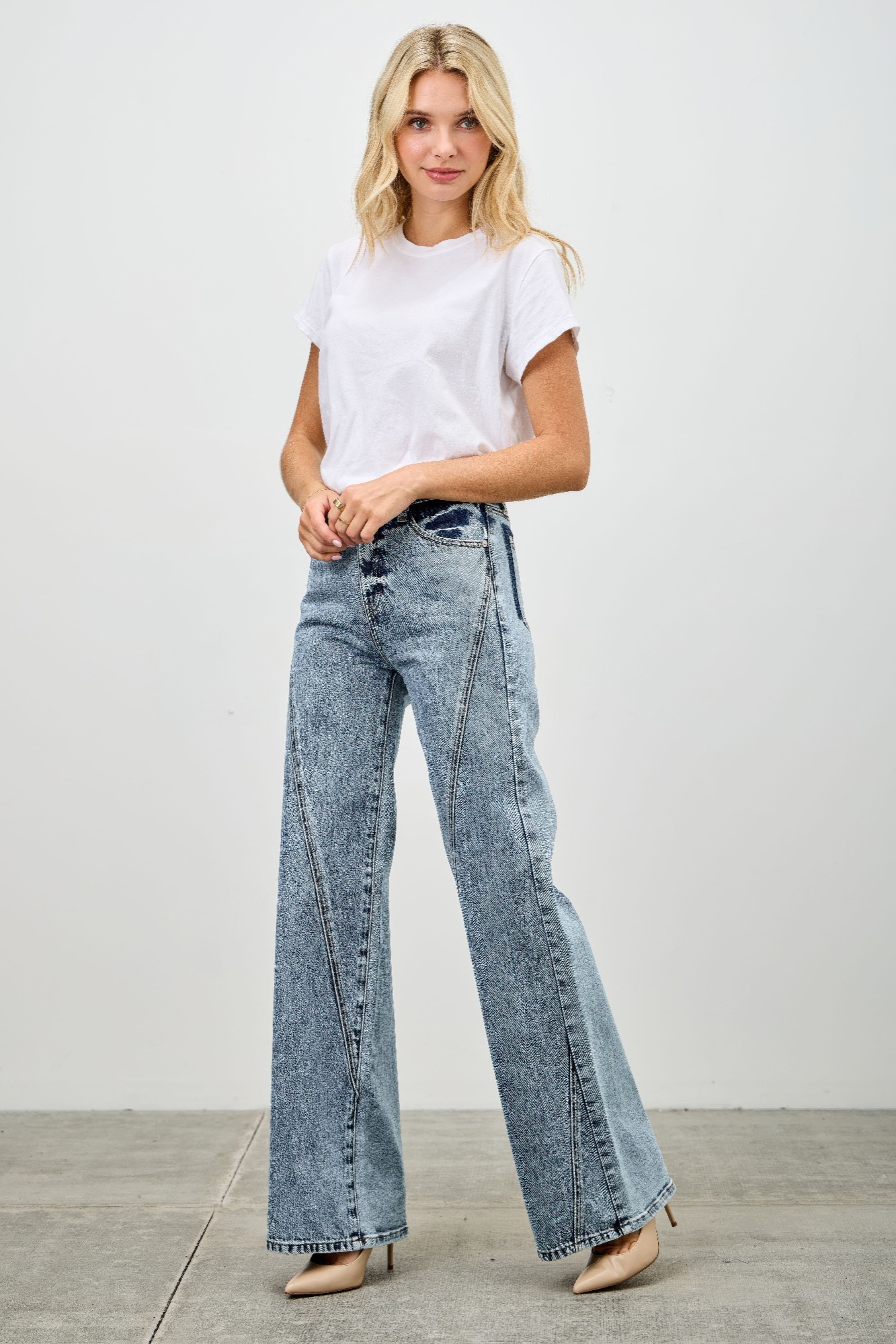 Effortlessly cool and comfortably structured, these high rise relaxed straight jeans with seam detail are made for everyday wear with a touch of refinement. The high-rise waist offers a flattering fit, while the relaxed straight leg provides ease and laid-back appeal. Unique seam detailing adds a modern twist, giving this classic silhouette updated dimension. Crafted from a soft cotton blend with minimal stretch, they deliver a sturdy yet breathable feel that holds its shape. Perfect for pairing with anything from tees to blazers, these jeans bring versatile style to any look.