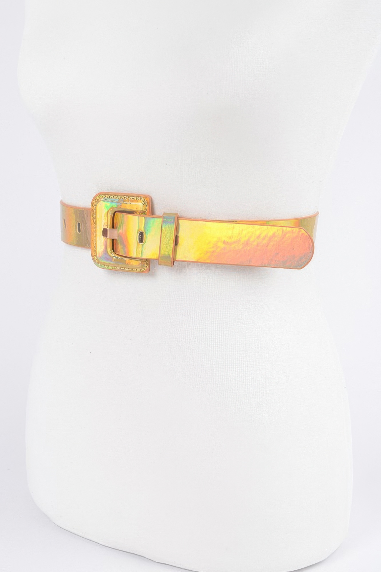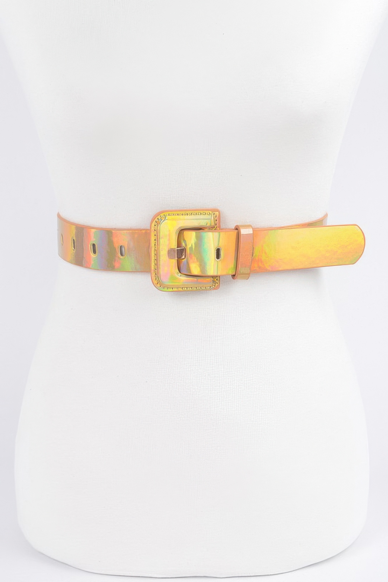 Make a futuristic statement with the Hologram Metallic Plus Size Belt, designed to shine and support. The sleek metallic surface offers a holographic finish that catches the light, while the extended length provides a secure, flattering fit for curvier frames. Adjustable and slim, it's perfect for adding edge to dresses, blazers, or jumpsuits. A bold accessory that brings a high-shine accent to any outfit.