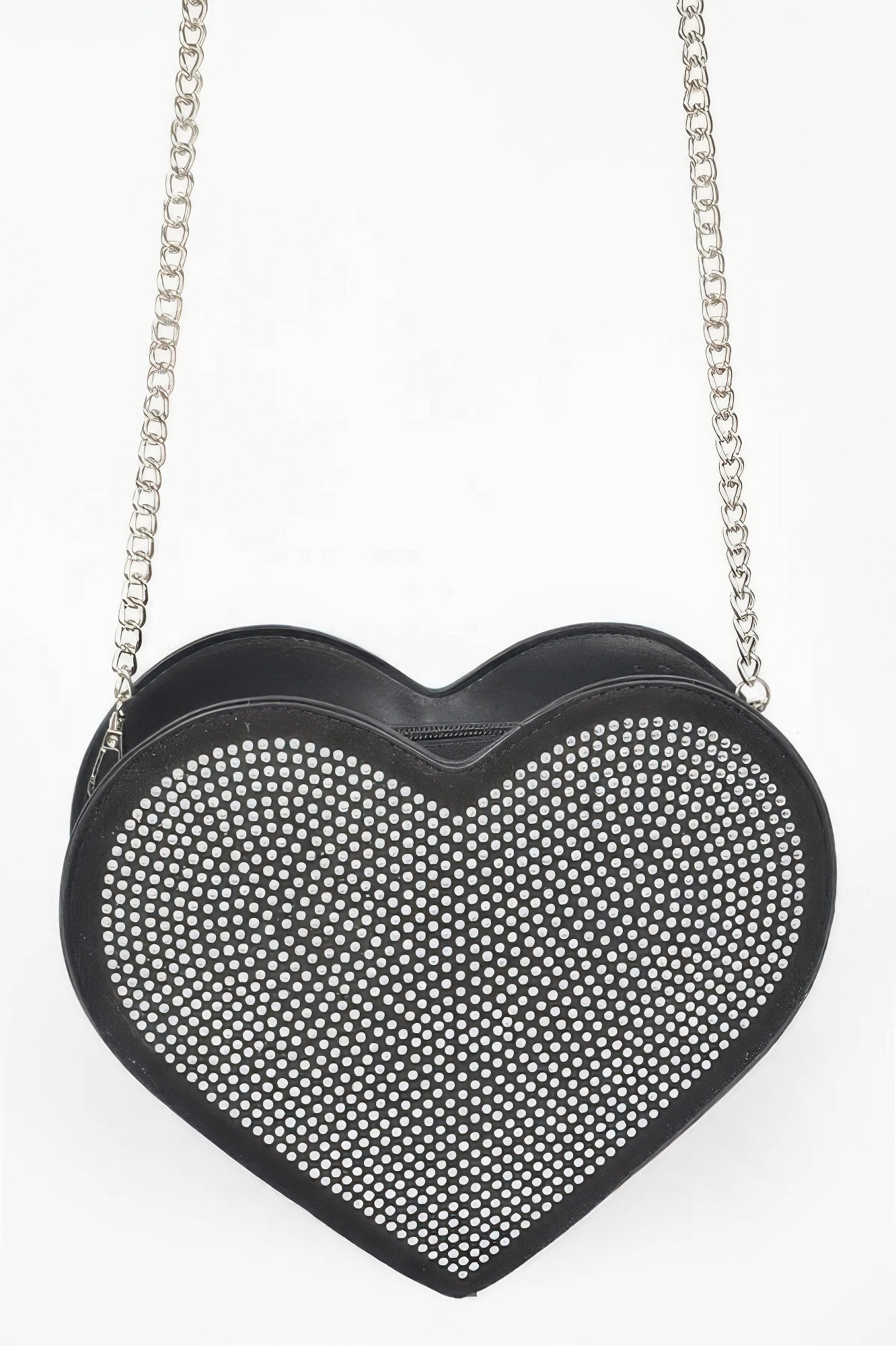 Heart-shaped bag with hot fix stone embellishments
