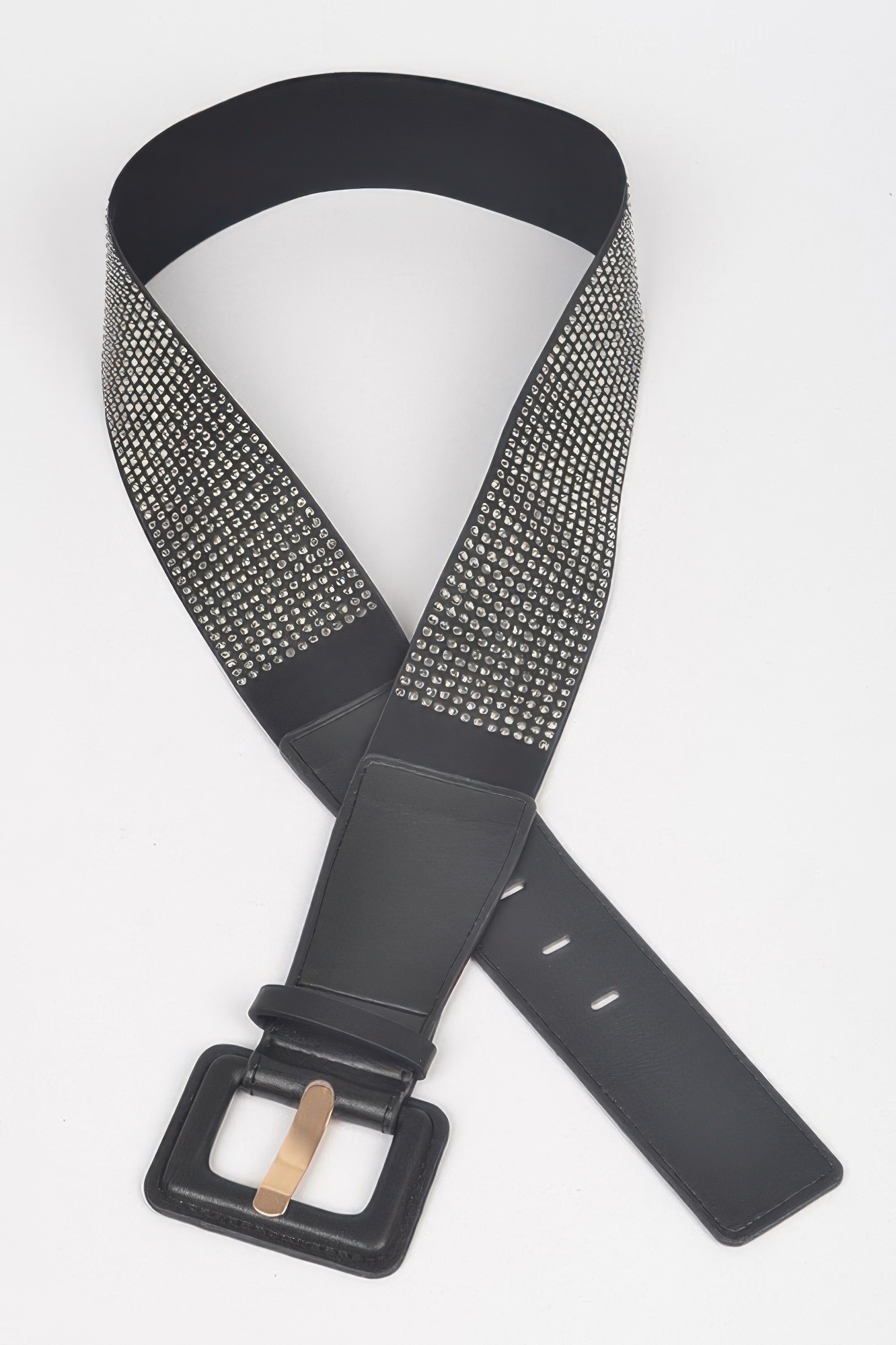 This hot fix plus size stretch belt features a sleek design enhanced with subtle embellishments for a refined and modern look. The extended length provides a comfortable and flexible fit, while the structured width defines the waistline. Its smooth finish adds a polished touch to any outfit. Designed for versatility, it works well across different styles. A functional accessory, it combines comfort with effortless style.