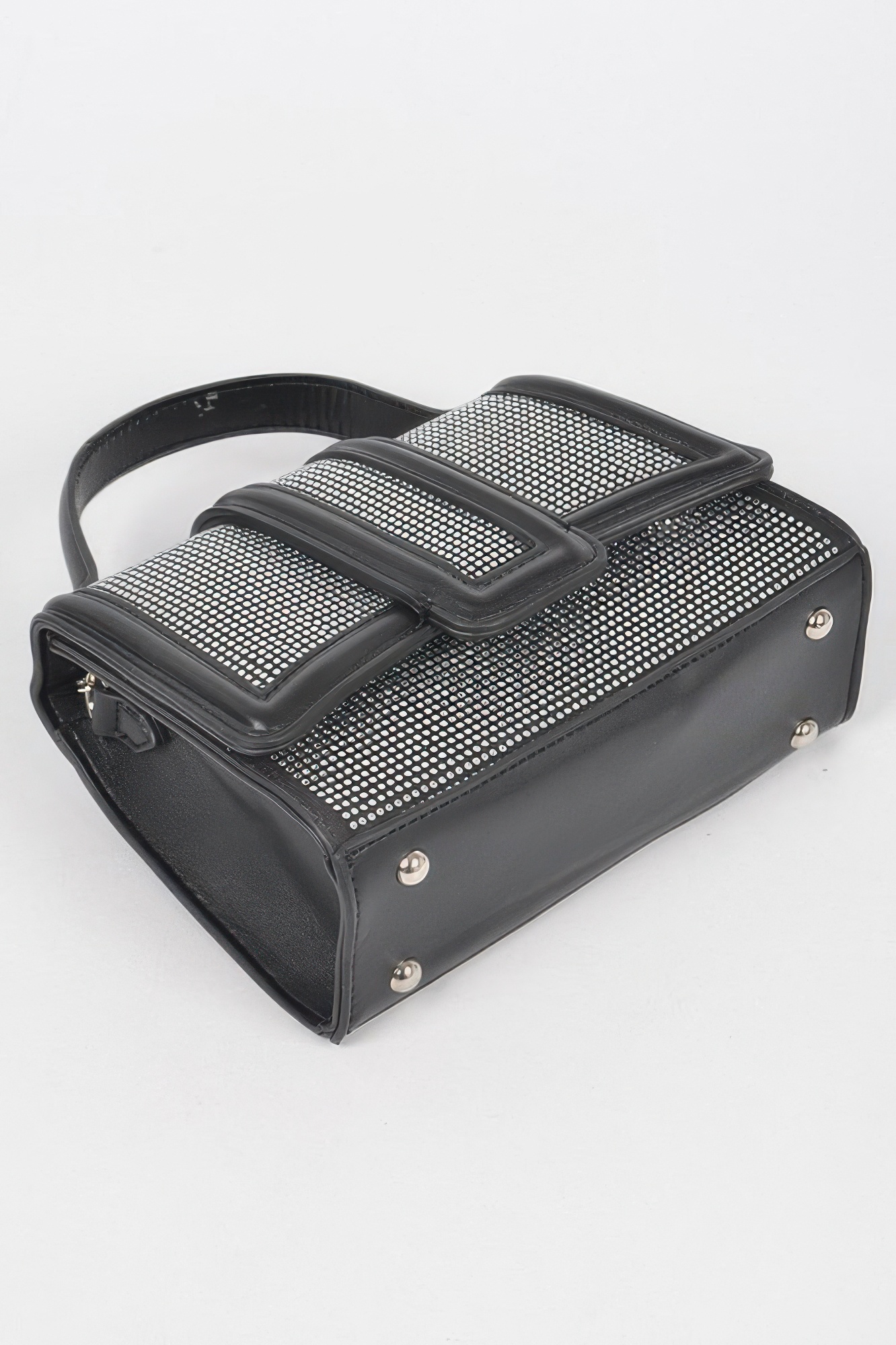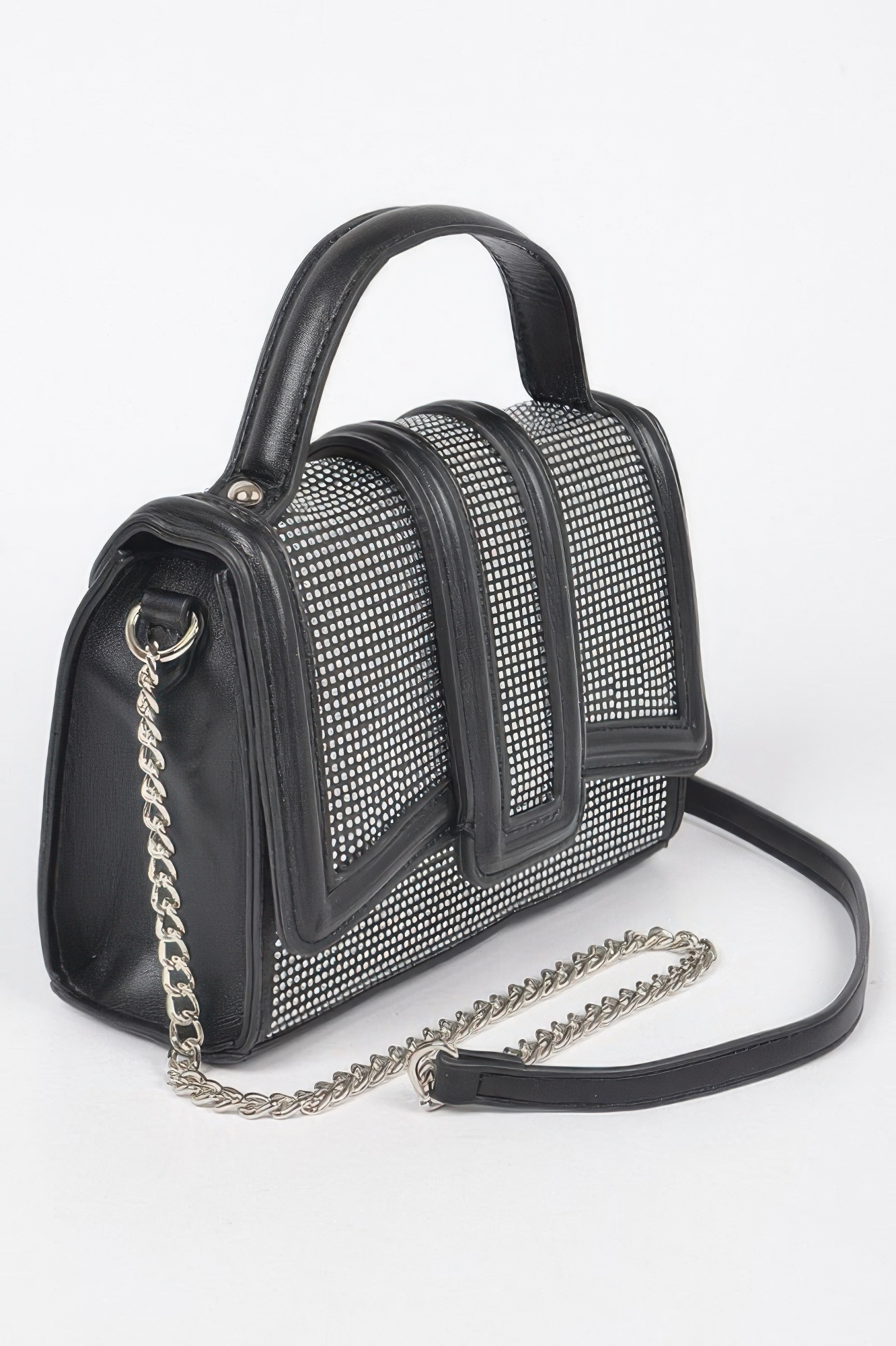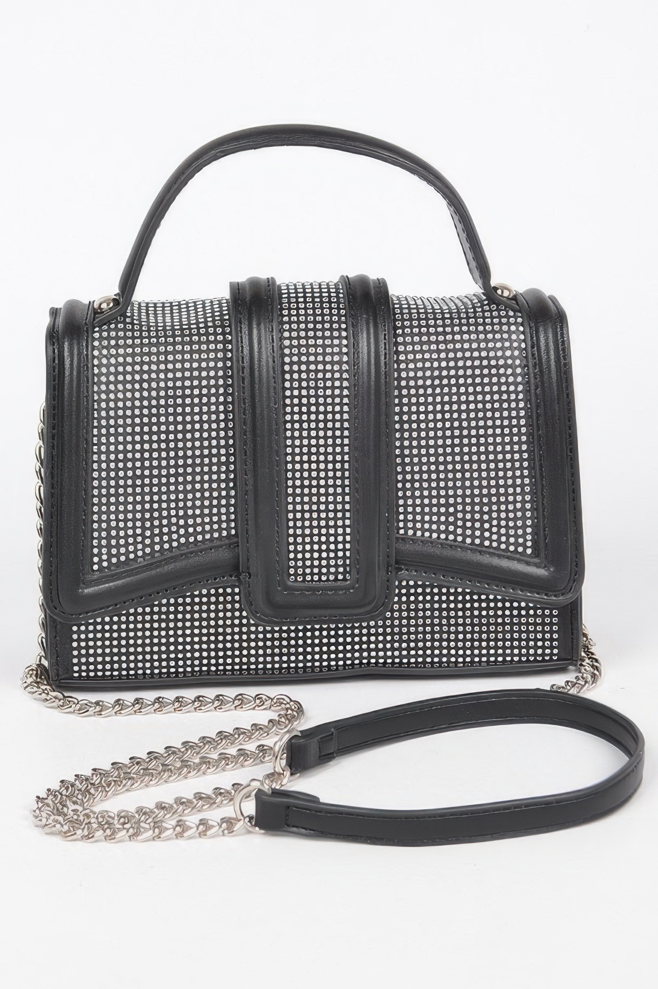 The Hot Fix Top Handle Clutch delivers glamorous shine with a sleek and structured silhouette. Embellished with sparkling hot fix details, this clutch adds eye-catching brilliance to evening and special occasion looks. The compact shape offers just enough space for your essentials while maintaining a refined profile. A sturdy top handle provides a sophisticated carrying option that complements its polished design. Crafted with polyurethane and mixed metal accents, it balances durability with elegant style. This clutch is a striking accessory designed to complete your event-ready ensemble.