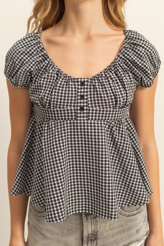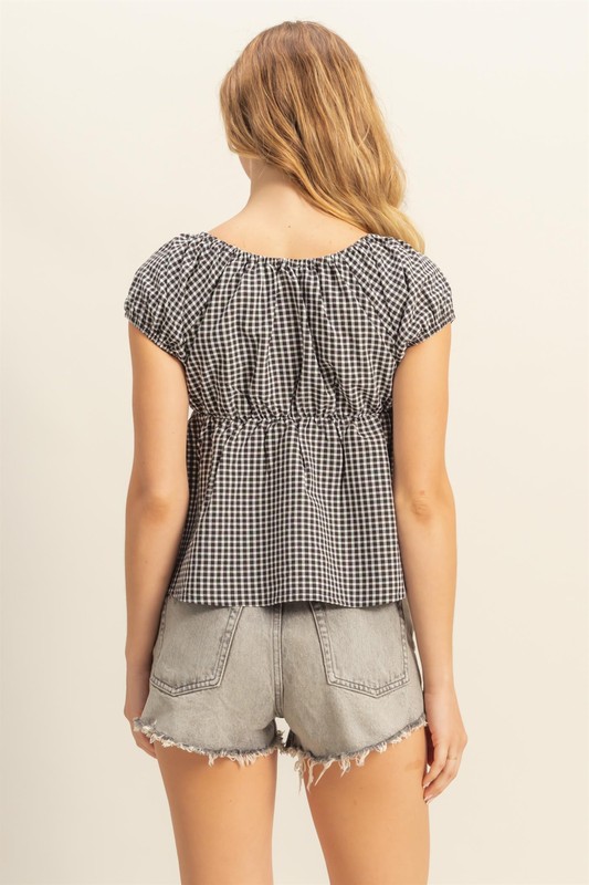 HYFVE Gingham Scoop Neck Cap Sleeve Blouse