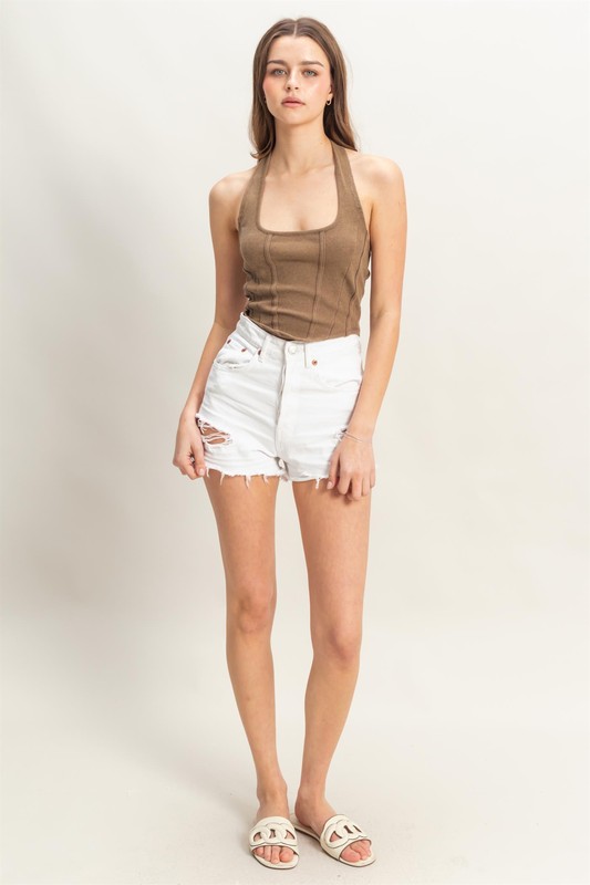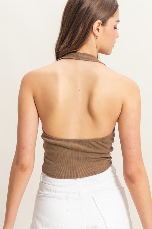 The mineral wash halter neck everyday top is a stylish and versatile addition to your wardrobe. Its unique mineral wash gives it a trendy, slightly worn-in look, perfect for casual or dressy occasions. The halter neck design adds a touch of elegance, making it a fashionable choice for everyday wear.