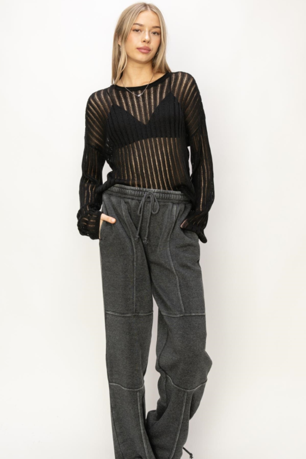 The Ribbed Openwork Long Sleeve Knit Top is a chic option for any casual or dressy outfit. The ribbed texture adds dimension and visual interest, while the openwork design adds a touch of femininity. With its long sleeves, this top is perfect for staying stylish and comfortable in cooler weather.