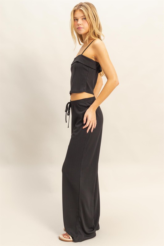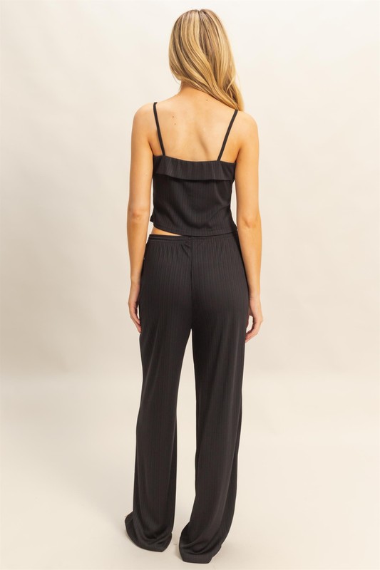 Elevate your loungewear game with this Rib Knit Cami Top and Pants Set. The ribbed knit fabric adds texture and interest to the set, creating a cozy and stylish look. The cami top offers a flattering silhouette and a hint of chic elegance, while the coordinating pants provide ultimate comfort with a stylish edge. This set is perfect for relaxing at home or running quick errands in style. Embrace comfort and fashion with this versatile and trendy loungewear set that combines style and comfort effortlessly.