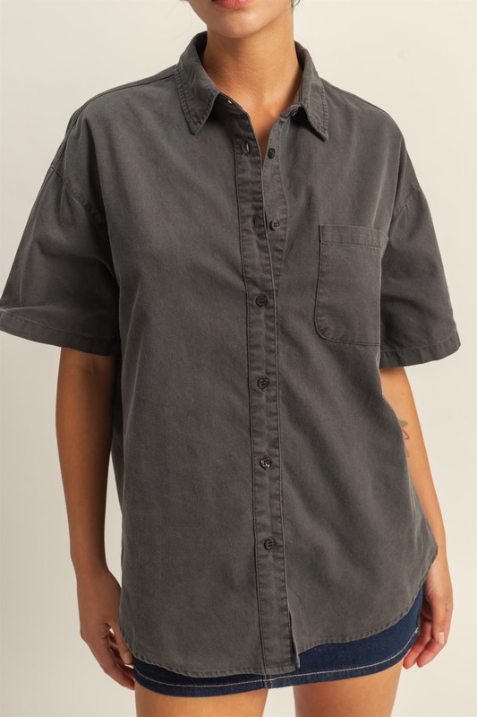 HYFVE Short Sleeve Button Down Oversized Shirt