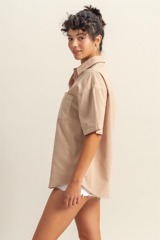 The Short Sleeve Button Down Oversized Shirt is a versatile and relaxed piece that features short sleeves and a button-down front for easy styling. This oversized shirt offers a laid-back and effortless look, perfect for casual outings or lounging in comfort.
