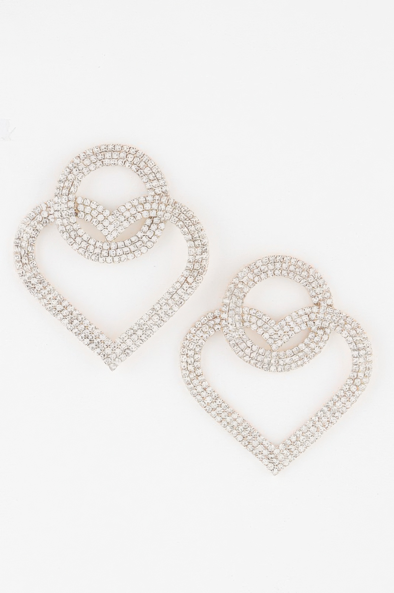 The Interlaced Jewel Heart Earrings combine romantic design with dazzling detail. Featuring an interwoven heart shape accented with sparkling jewels, these earrings create a bold yet elegant statement. The intricate structure adds depth and dimension, making them a standout accessory for special occasions or stylish everyday wear.