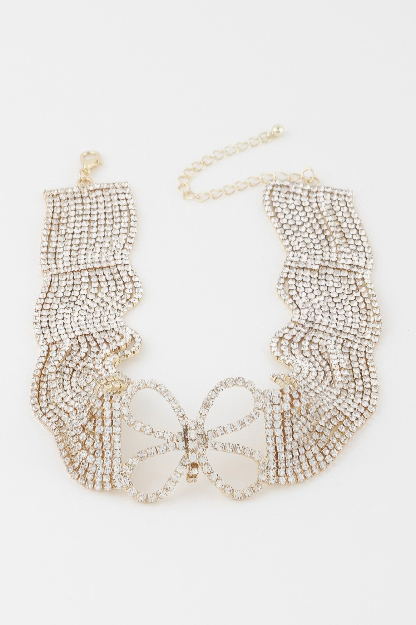 The Jeweled Butterfly Choker Necklace combines delicate charm with radiant sparkle. Featuring a butterfly centerpiece adorned with jeweled accents, it adds whimsical elegance to any look. The choker-length design sits gracefully at the neckline for a polished finish. Perfect for special occasions or statement styling, it offers eye-catching detail in a refined silhouette. This necklace brings playful sophistication with luminous shine.