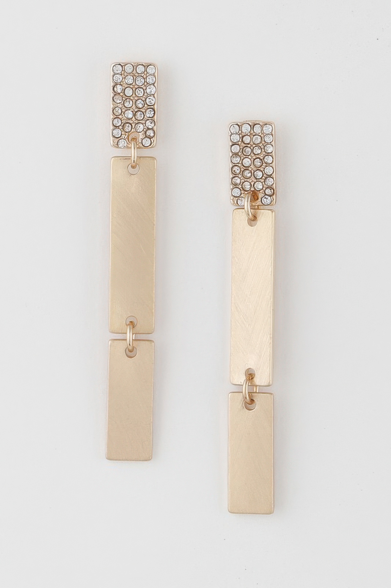 These jeweled triple bar earrings offer a sleek and modern design with a hint of sparkle. The linear bar structure creates a clean silhouette, while the jeweled accents add subtle brilliance. Their elongated shape enhances movement and elegance without overwhelming your look. Lightweight and comfortable, they are perfect for extended wear. A polished accessory, they bring a contemporary edge to any outfit.