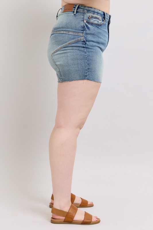 The high waist star seam detail denim shorts offer a trendy and unique look for your wardrobe. Featuring a flattering high-rise design and star-shaped seam detailing, these shorts add a touch of whimsy to your outfit. Perfect for casual days or music festivals, they provide a fun and stylish option for summer styling. Embrace your individuality and stand out with these star seam detail denim shorts.