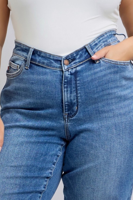 High Waist V-Front Vintage Wash Straight Jeans are a classic and trendy denim option that combines a high-waisted design with a v-front detail and vintage wash finish. The high-waist silhouette offers a flattering and elongating fit, while the v-front adds a stylish and unique touch to the jeans. The vintage wash gives the denim a worn-in look, creating a cool and retro vibe. The straight leg cut provides a timeless and versatile style that can be dressed up or down for various occasions. Pair these jeans with a tucked-in blouse and heels for a chic and polished look, or with a casual tee and sneakers for a relaxed and effortless ensemble. The High Waist V-Front Vintage Wash Straight Jeans are a stylish and versatile addition to any wardrobe, offering both comfort and fashion-forward appeal.