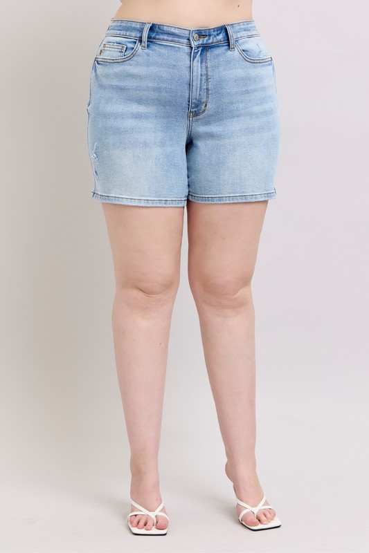 Mid-rise washed denim shorts are a versatile and classic piece for your summer wardrobe. The mid-rise waistline offers a comfortable and flattering fit that sits at the natural waist. The washed denim finish gives the shorts a casual and relaxed vibe, perfect for creating effortless and laid-back looks. These shorts are a staple for warm weather and can be styled in numerous ways. Pair them with a graphic tee and sneakers for a casual weekend outfit, or dress them up with a blouse and sandals for a more polished ensemble. The timeless appeal of denim shorts makes them a versatile and essential piece for creating stylish and comfortable outfits during the summer months.
